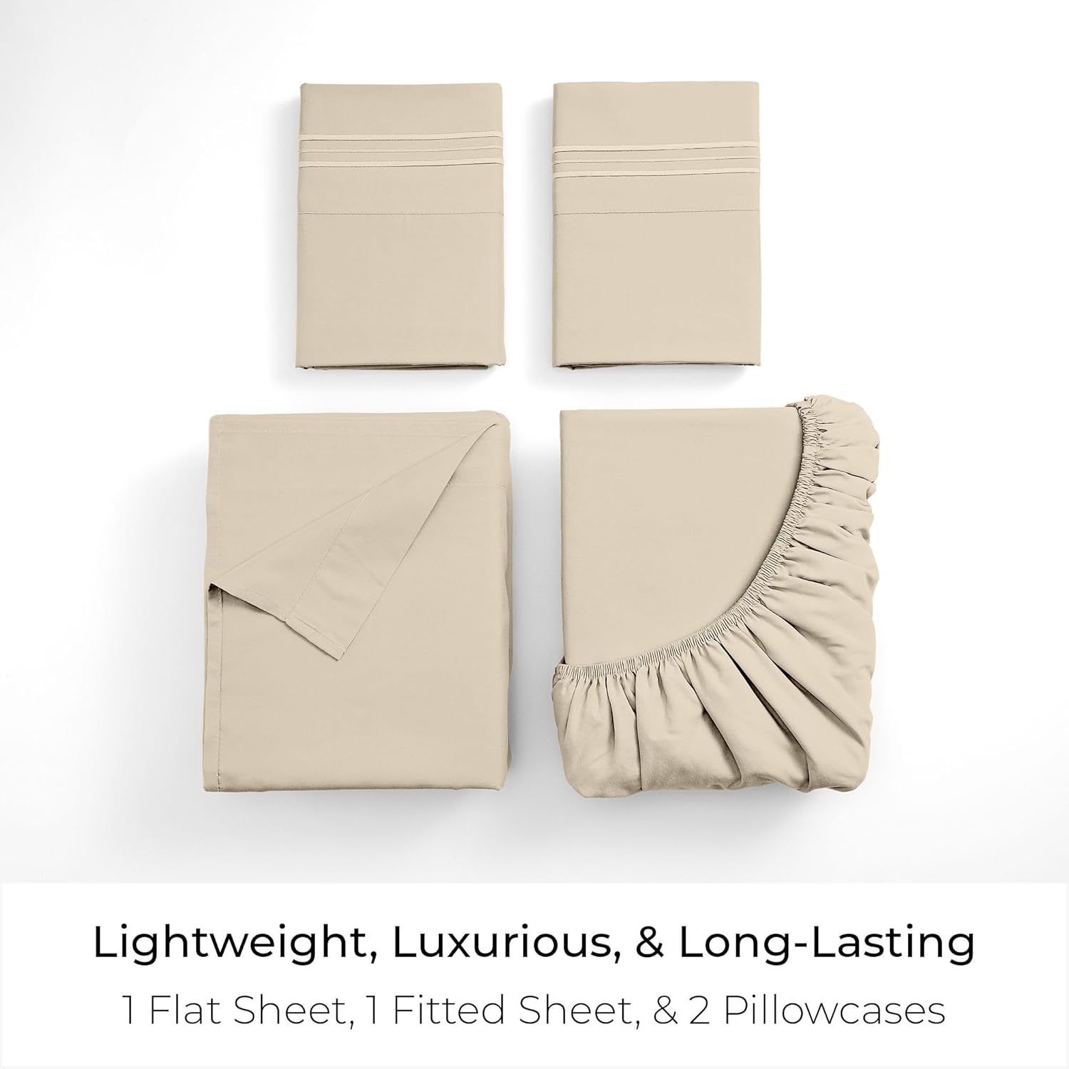 Mellanni Queen Sheets Set - 4 PC Iconic Collection Bedding - Hotel Luxury, Extra Soft, Cooling Bed Sheets - Wrinkle, Fade, Stain Resistant (Queen, Beige)