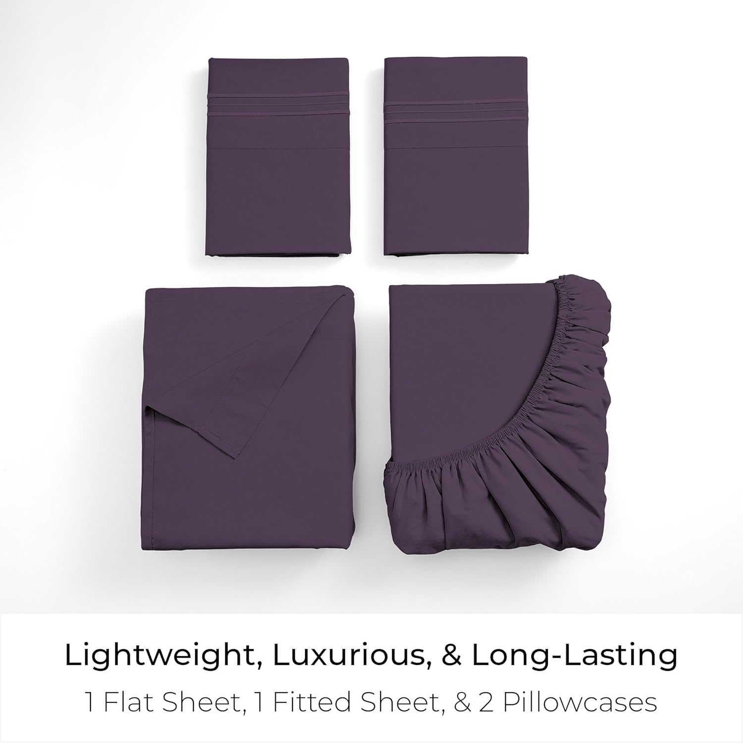 Mellanni Queen Sheets Set - 4 PC Iconic Collection Bedding - Hotel Luxury, Extra Soft, Cooling Bed Sheets - Wrinkle, Fade, Stain Resistant (Queen, Purple)