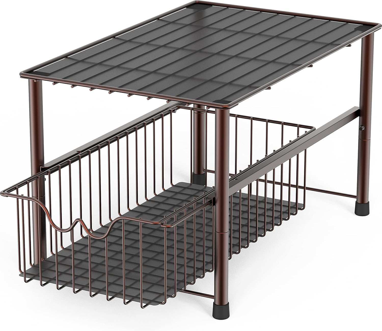 Deco Brothers Stackable Under Sink Organizer with Sliding Basket, Bronze