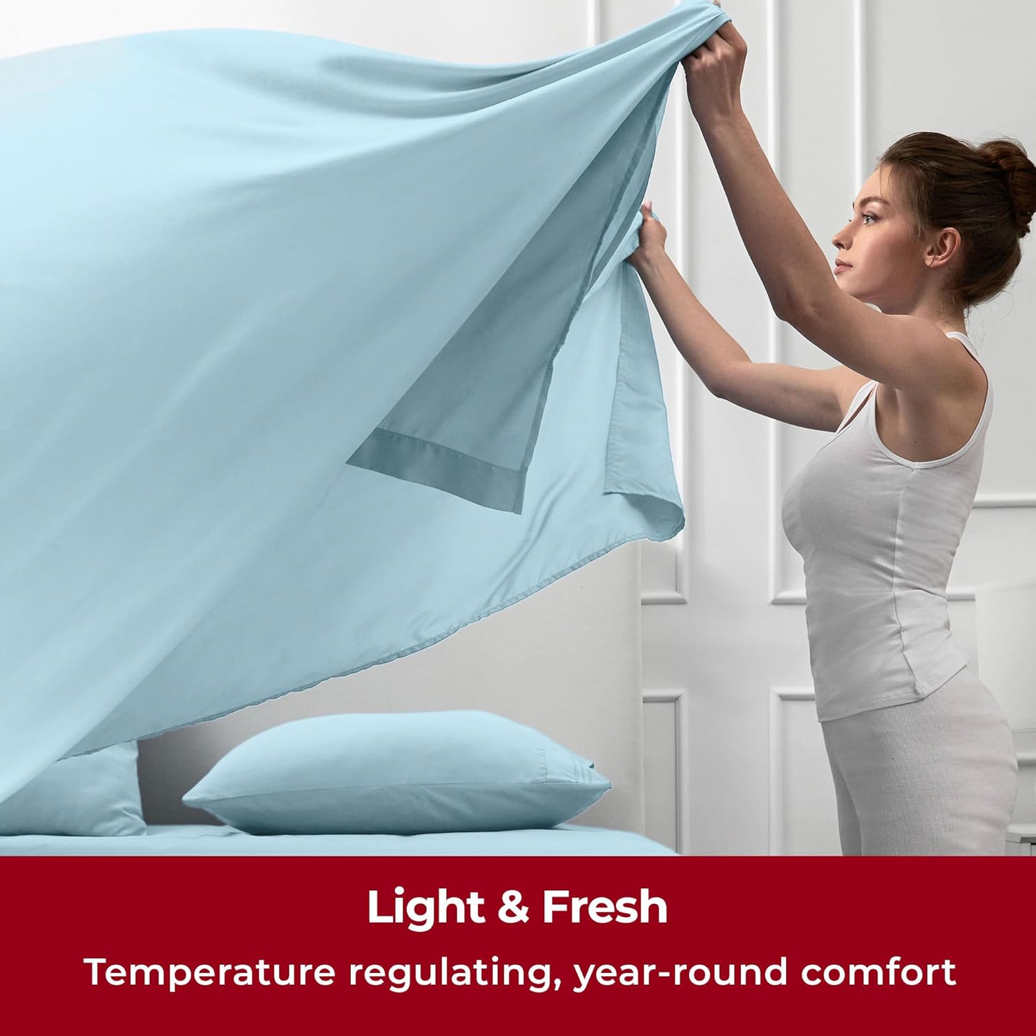 - Lightweight Luxury for Year-Round Comfort - Designed to be airy and ultra-light, our sheets offer effortless comfort in every season. Their thin, breathable construction enhances airflow, wicks moisture, and dries quickly. Despite their lightweight feel, these sheets are exceptionally strong and more durable than cotton, resisting stains, tears, and wear from frequent washing. Perfect for busy households with kids or pets.
