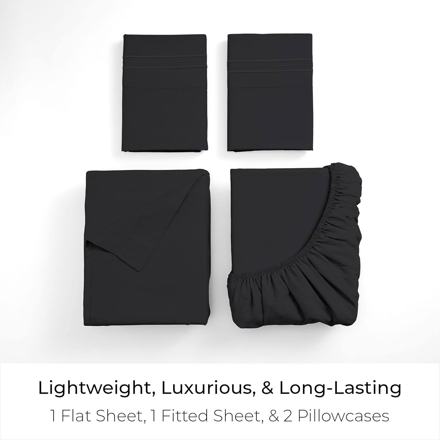 Mellanni California King Sheets Set - 4 PC Iconic Collection Bedding - Hotel Luxury, Extra Soft, Cooling Bed Sheets - Wrinkle, Fade, Stain Resistant (Cal King, Black)