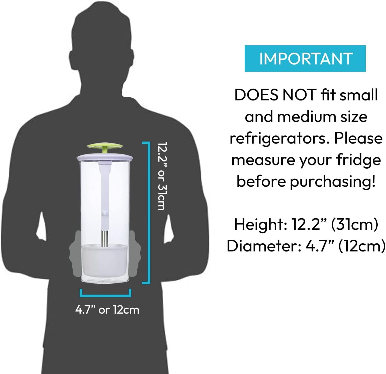 - XXL Size: 4.7" diameter, 12.2" tall. Please measure your fridge before purchasing!