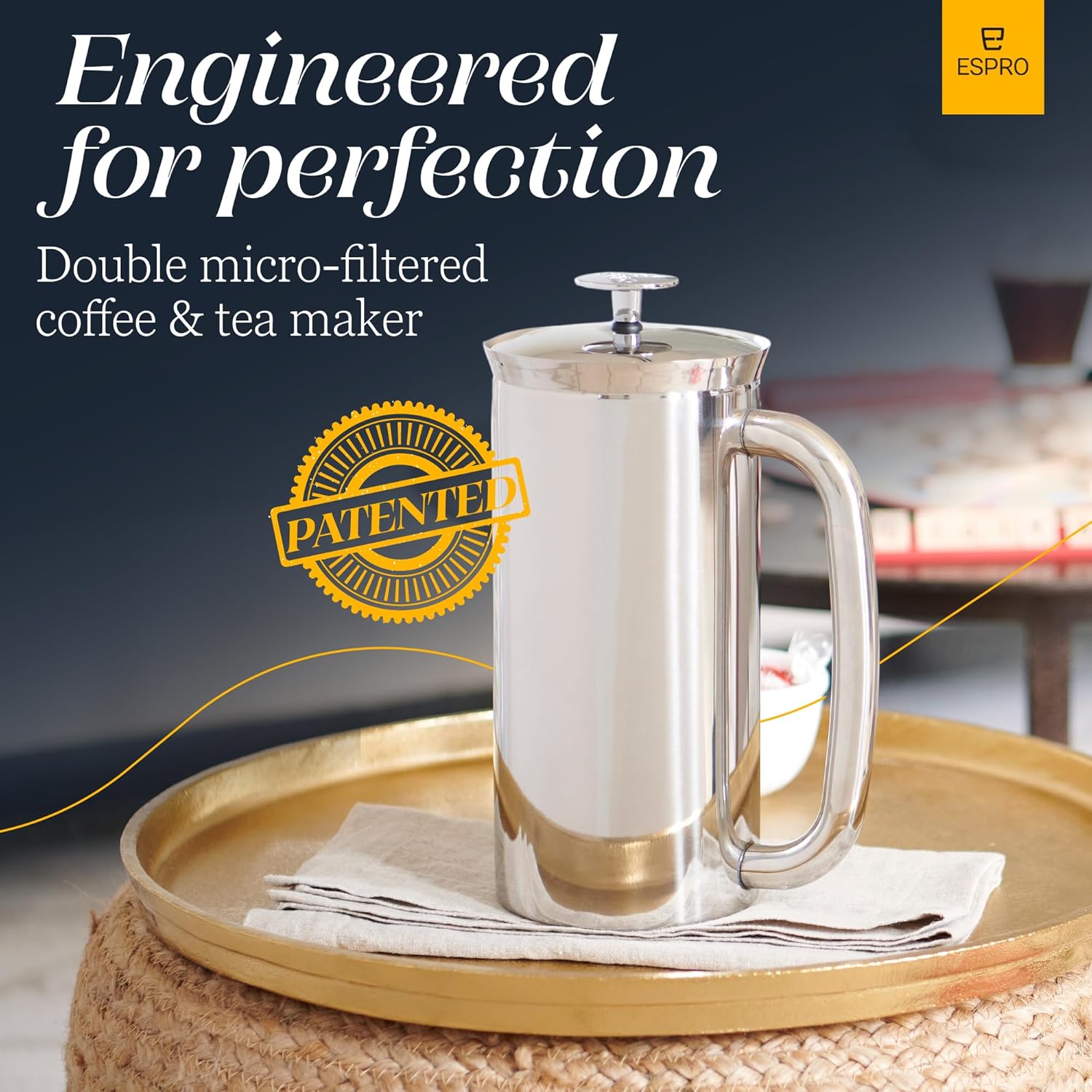 - IDEAL FOR GIFTING: ESPRO is the ultimate French press, crafted with stainless steel and featuring a double filter for the perfect coffee experience. It's a gift that will impress any coffee enthusiast on any occasion.