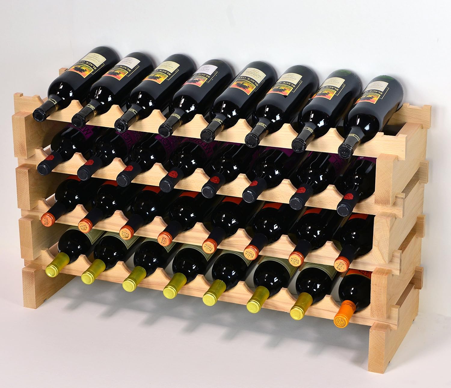 - Stackable, 8 bottles wide by 4 shelves high racks, giving you a total storage of 32 bottles.