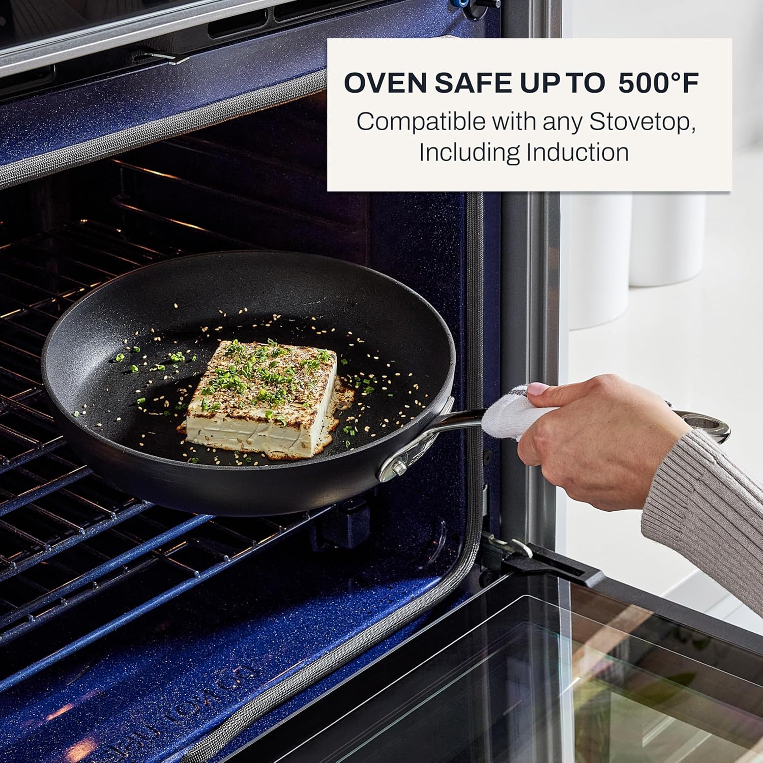 - Oven safe up to 500°F and compatible with any stovetop, including induction Dishwasher safe To preserve the nonstick, wash your cookware with a soap and sponge, and using silicone, nylon or wooden utensils