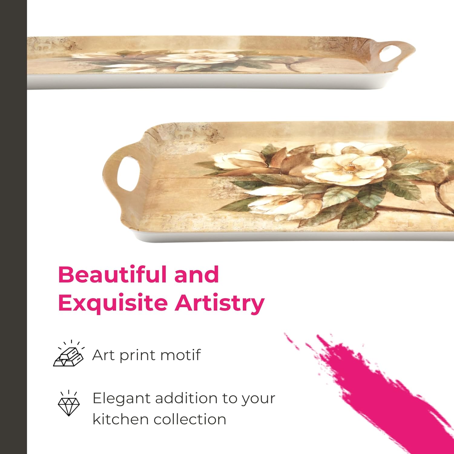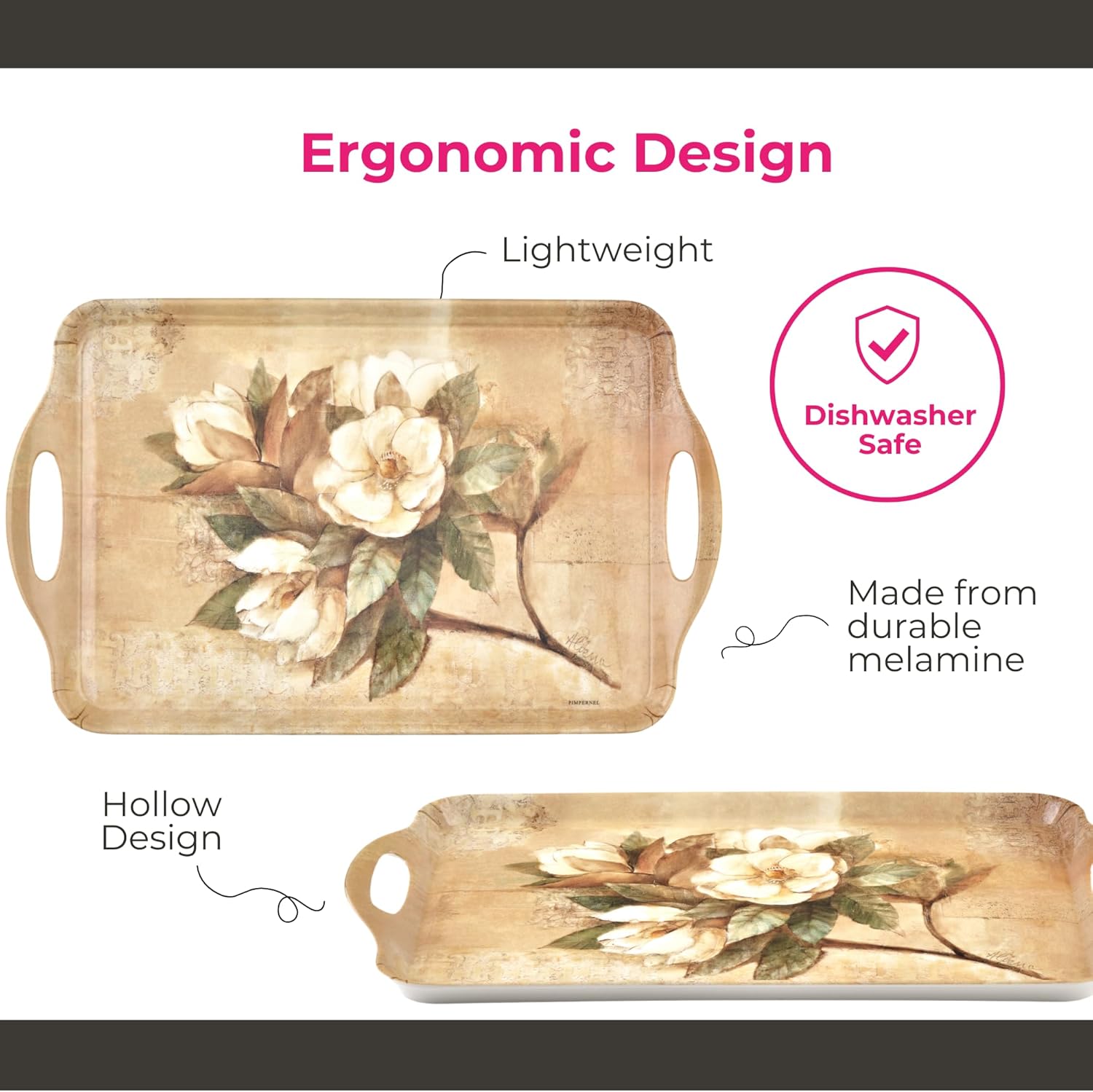 Pimpernel Sugar Magnolia Large Handled Tray - Rectangular Melamine Serving Tray with Bright Floral Magnolia Design & Side Handles - Dishwasher Safe Platter for Snacks Drinks/Decorative Table Display