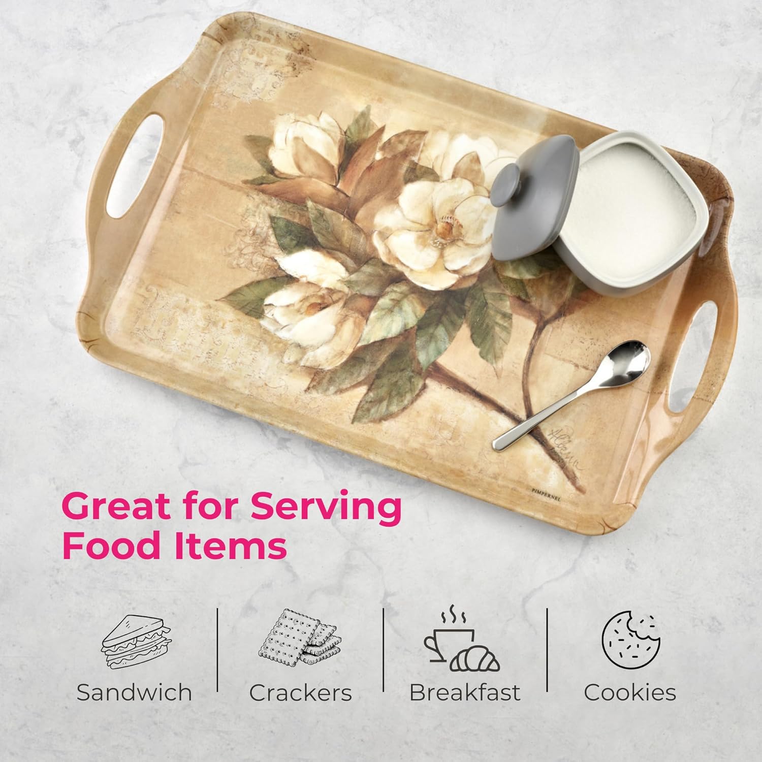 - Bold Magnolia Artwork: This floral serving tray features a vivid display of blooming magnolias, blending soft pastels with rich tones to create an eye-catching centerpiece for tables or counters.
