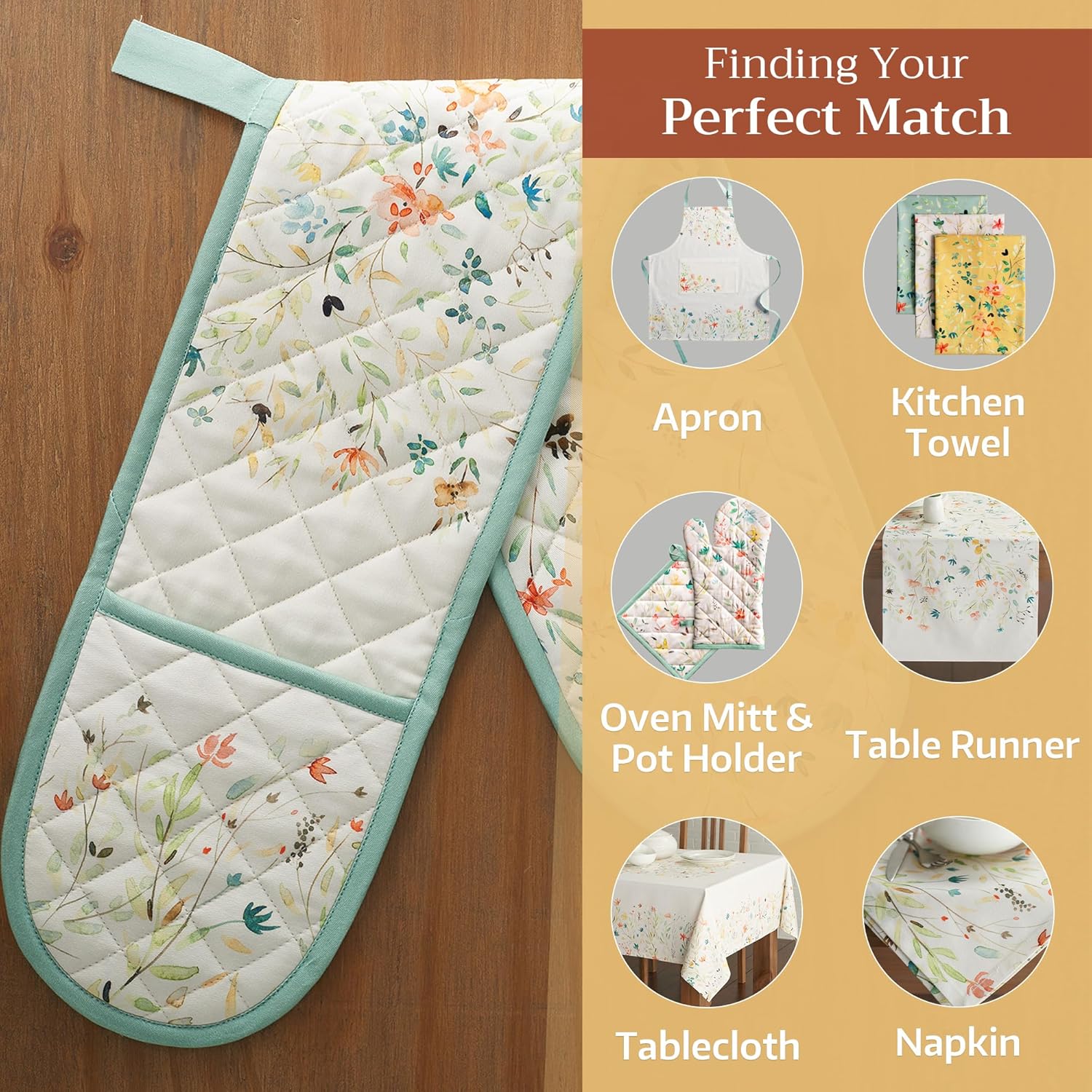 Maison d' Hermine Double Oven Mitts 100% Cotton 7"x35" Double Oven Mitt Heat Resistant BBQ Cooking Gloves with Loop, Baking, Grilling, Home, Kitchen, Handling Hot Pans Spring Summer (Colmar)