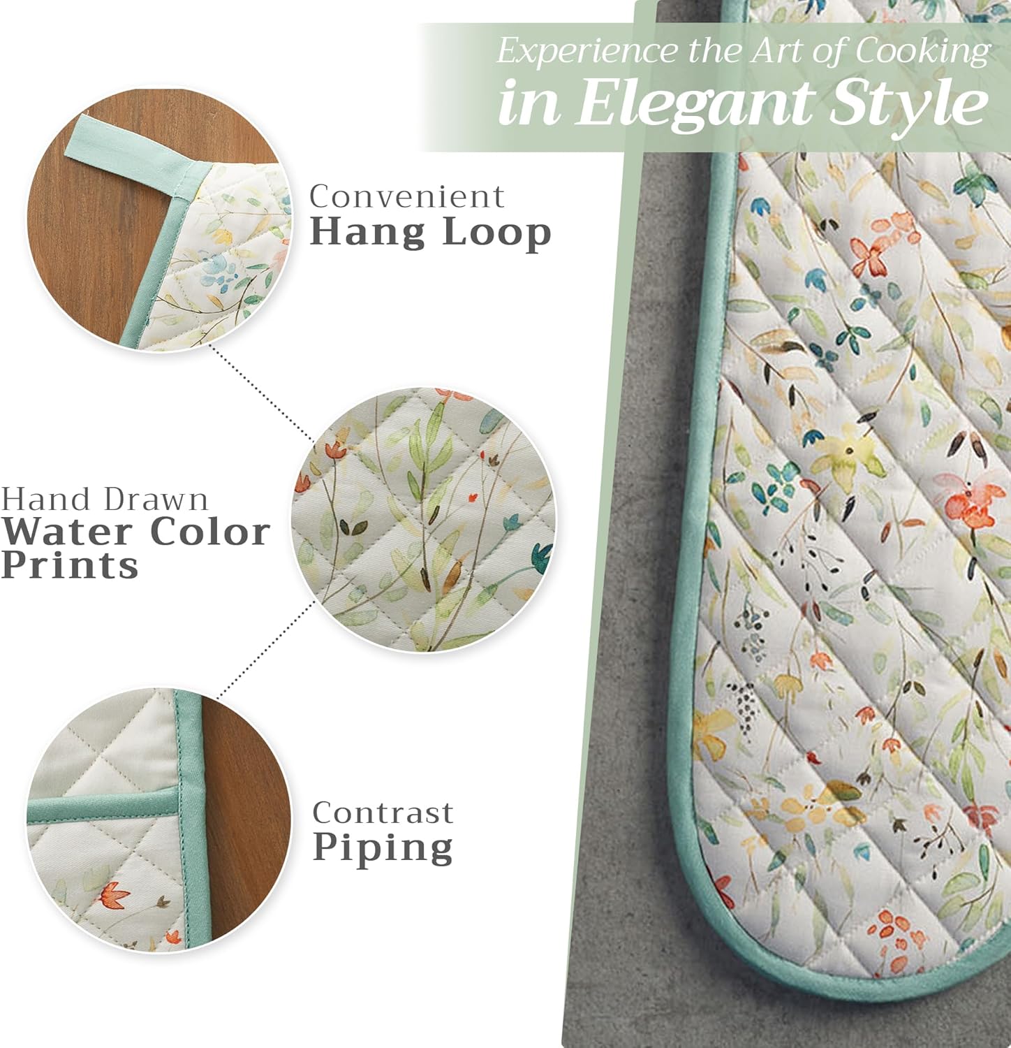 - 100% Quilted cotton: Crafted from premium quilted cotton for superior heat resistance and durability. This double oven mitt offers a soft, flexible grip and protects your hands during baking, roasting, or grilling