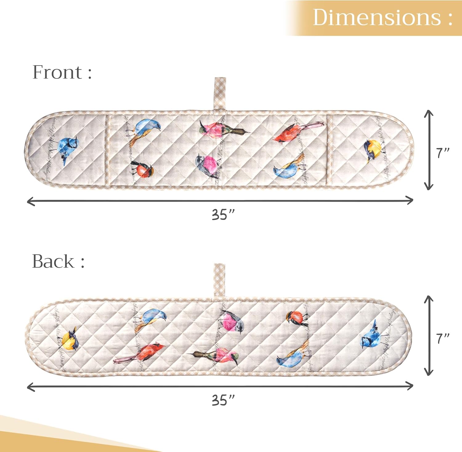 Maison d' Hermine Double Oven Mitts 100% Cotton 7"x35" Double Oven Mitt Heat Resistant BBQ Cooking Gloves with Loop, Baking, Grilling, Home, Kitchen, Handling Hot Pans Spring Summer (Birdies On Wire)
