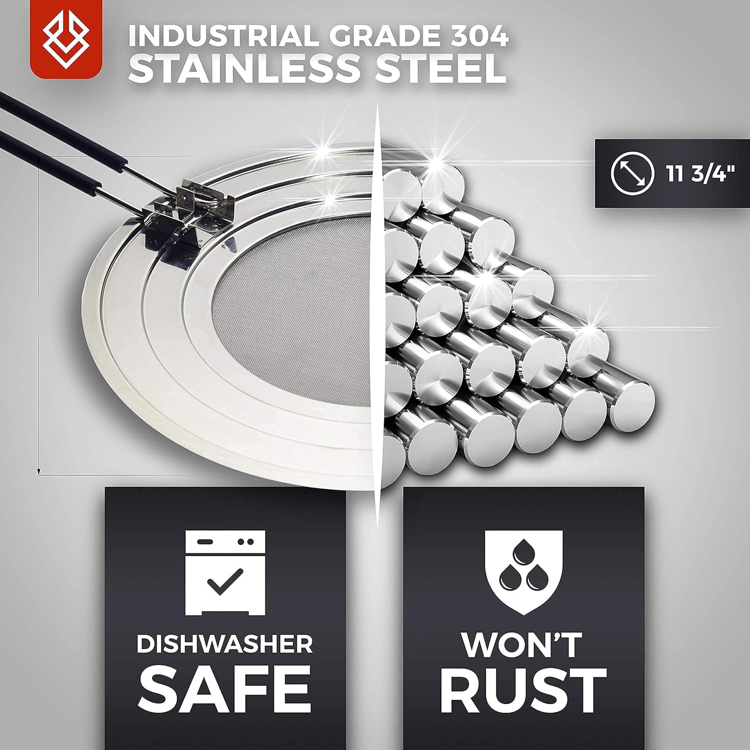 - LESS MESS = LESS STRESS! The stainless steel outer ring around a micro-mesh screen that’s tighter knit than a doomsday cult keeps grease and oil inside the pan. Other shields have looser knit mesh all the way to the edge.