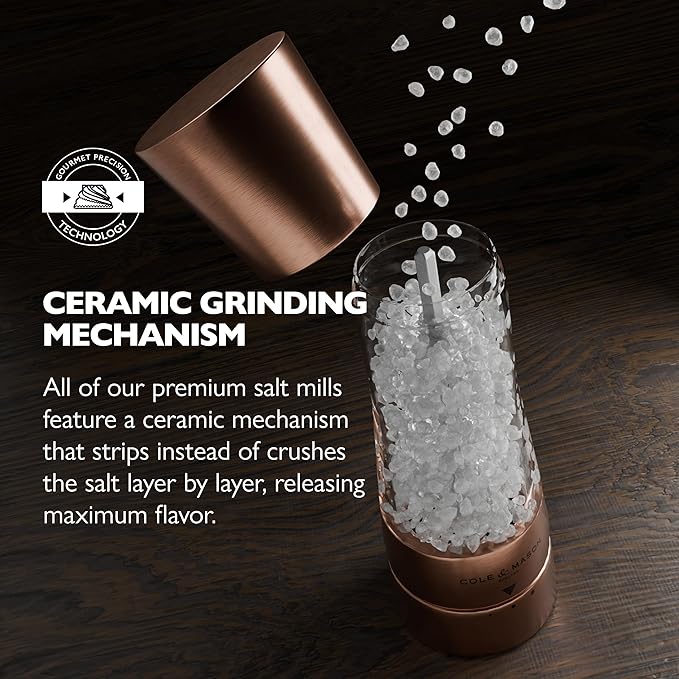 COLE & MASON Derwent Salt Grinder - Copper Mill Includes Gourmet Precision Mechanism and Premium Sea Salt