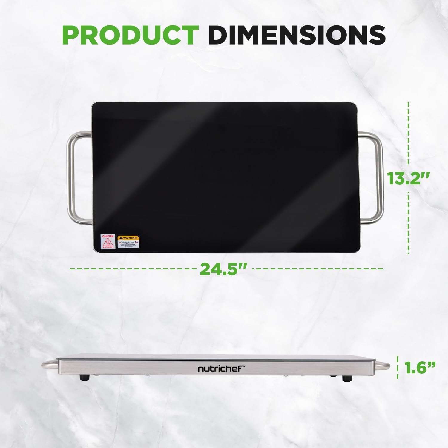 NutriChef Large Electric Warming Tray | 20" x 12" Hot Plate | Ideal for Buffets, Restaurants, Parties, & Home Dinners - Glass Top Keeps Food Hot - Perfect for Events | Heats your food to 200°F