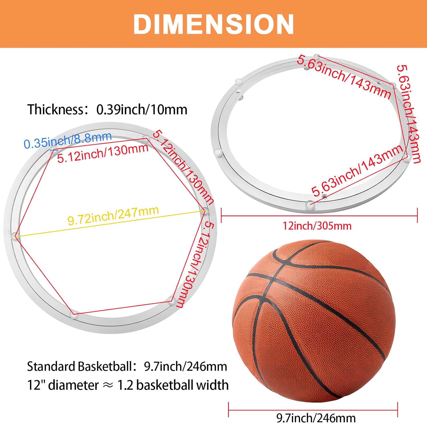 - LOAD CAPACITY - 70kg / 150 lbs. DIAMETER - Outer Ring Width 300mm/12", Inner Ring Width 247mm/9.72". THICKNESS - 10mm/0.4"