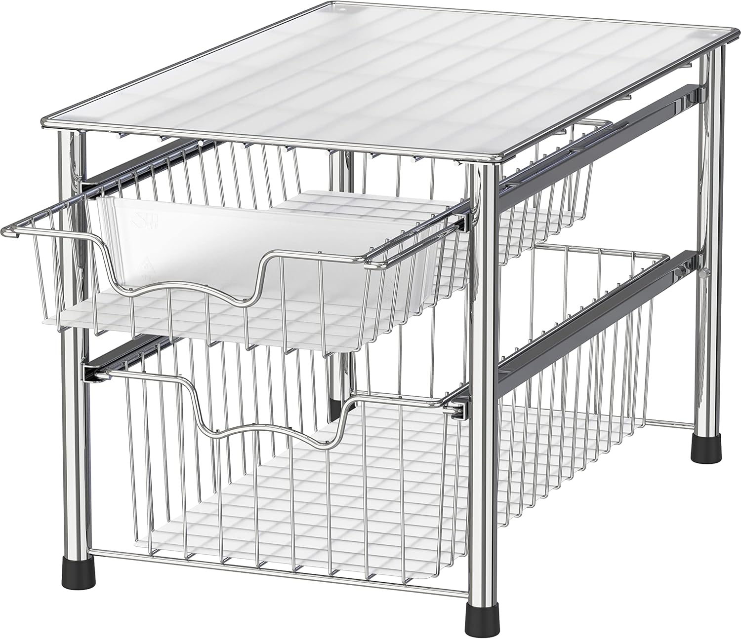 Simple Houseware Stackable 2 Tier Sliding Basket Organizer Drawer, Chrome
