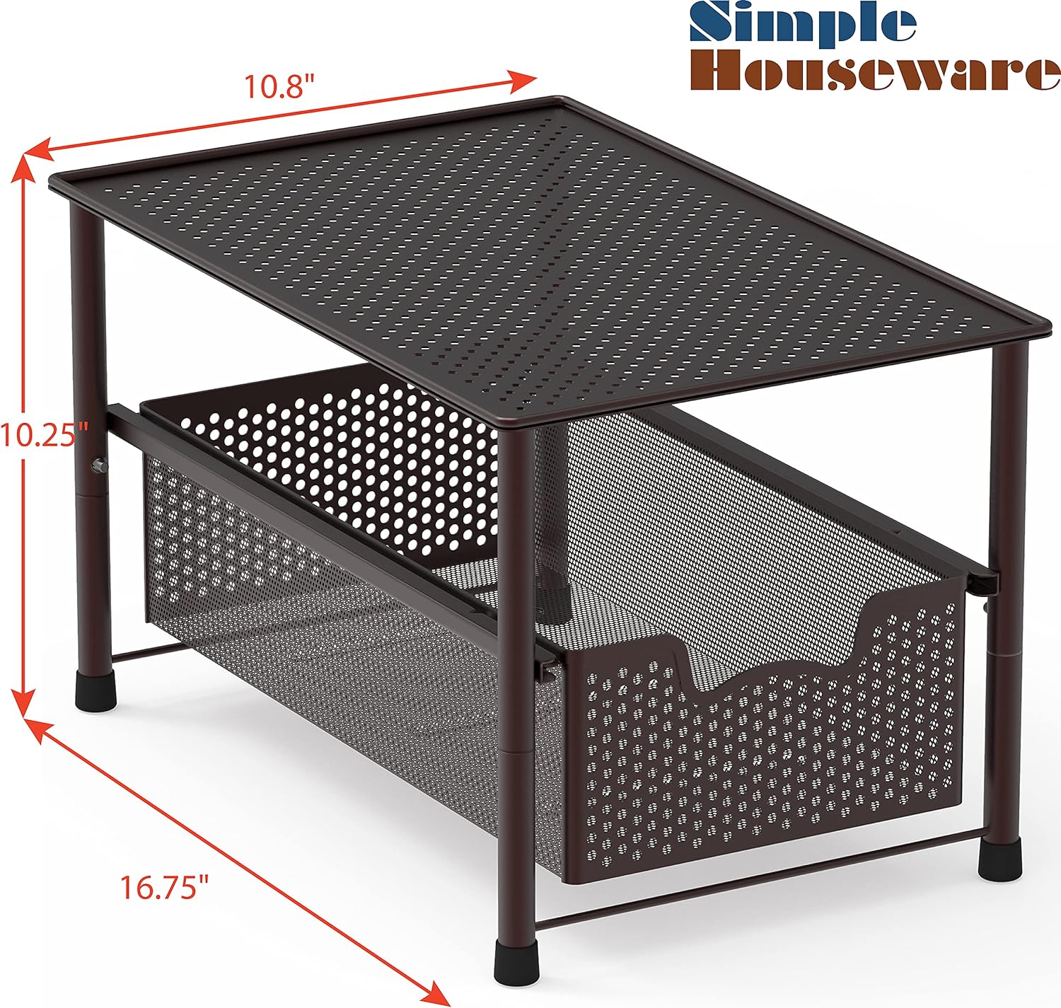 Simple Houseware Stackable Under Sink Cabinet Sliding Basket Organizer Drawer, Bronze