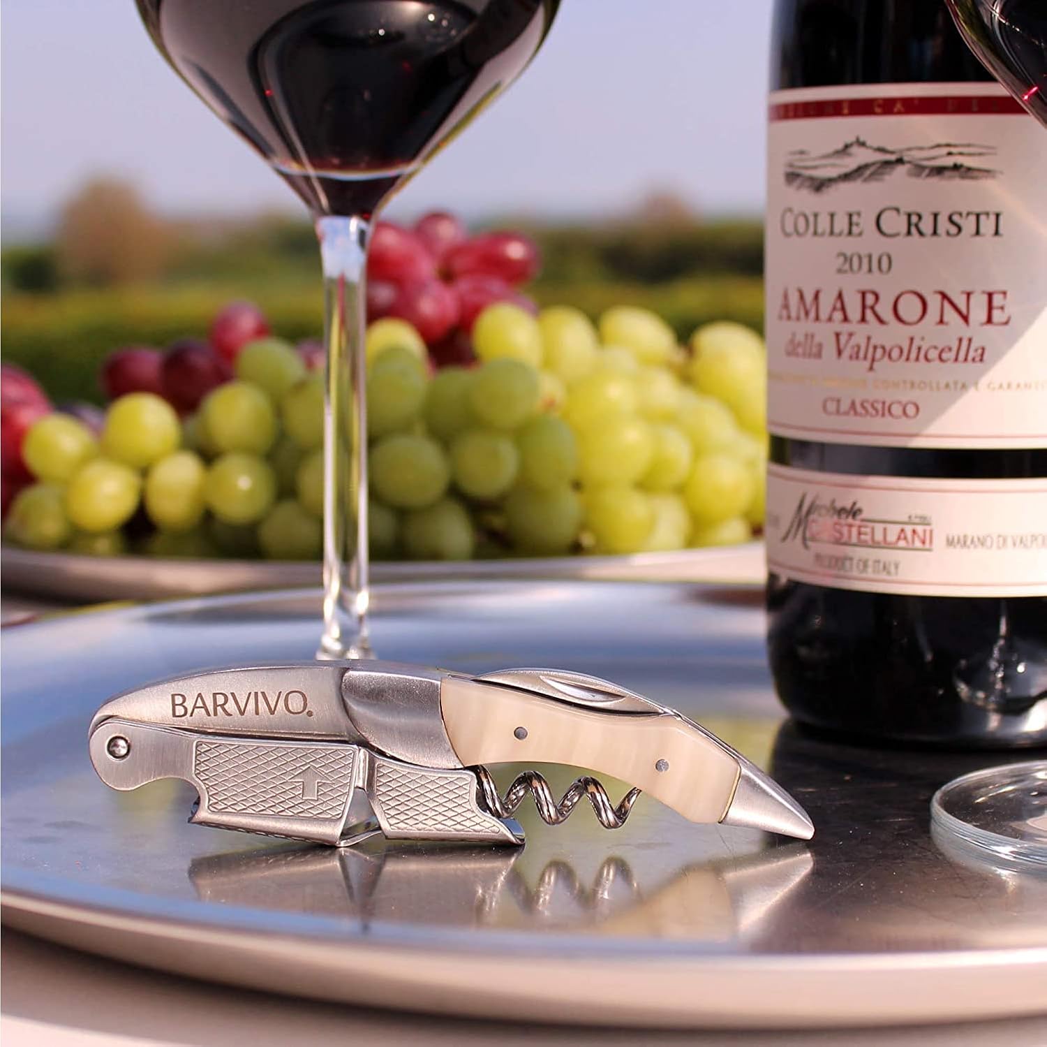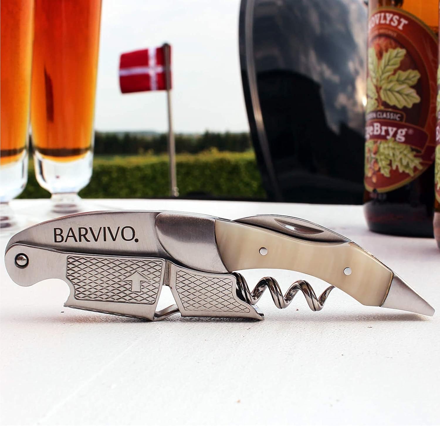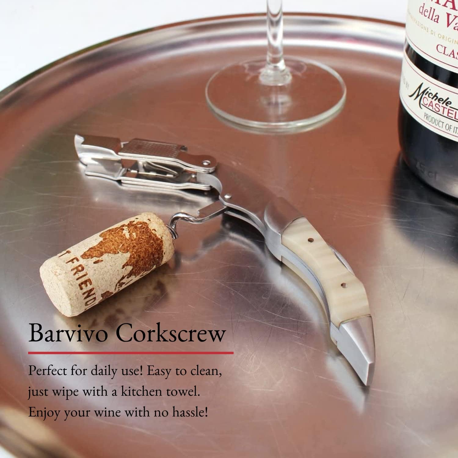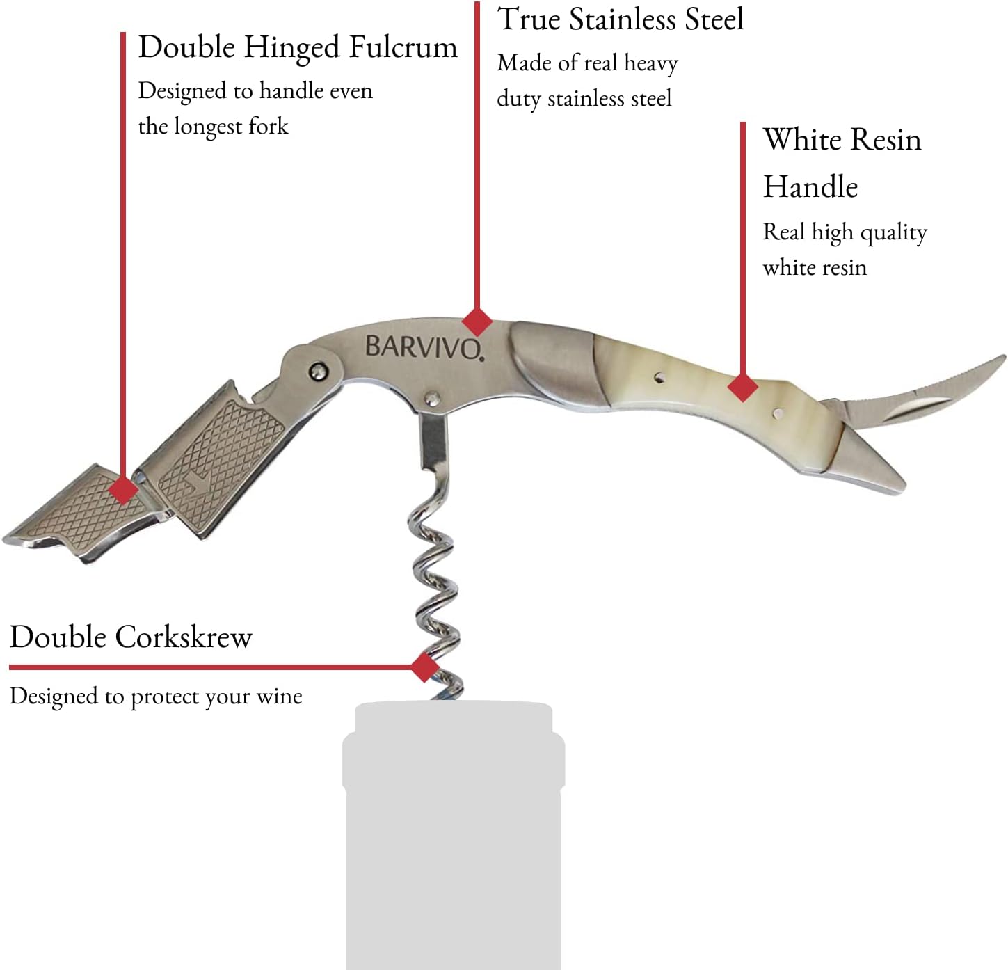 Barvivo Wine Opener with Foil Cutter and Cap Remover - Double Hinged Corkscrew for Bartenders - Stainless Steel Wine Key for Easy Bottle Opening - Manual Wine Bottle Opener - White Resin, 4.7x1.2-Inch