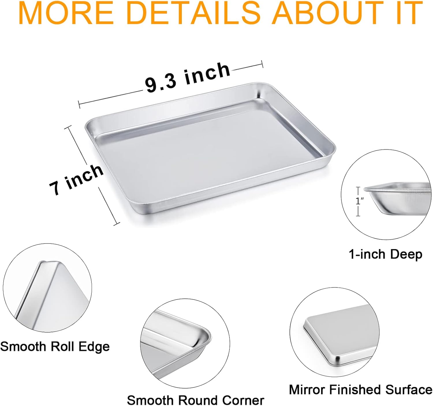 TeamFar Toaster Oven Tray and Rack Set, 9.3’’ x 7’’ x 1’’, Stainless Steel Toaster Oven Pan Broiler Pan, Non Toxic & Healthy, Easy Clean & Dishwasher Safe