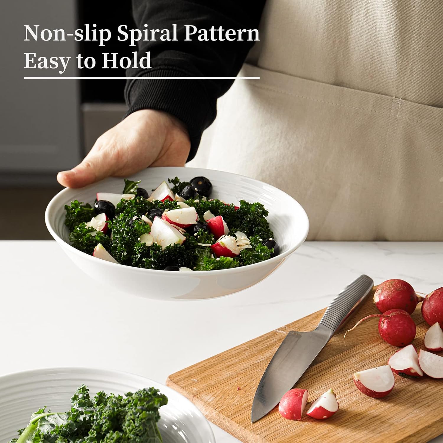 - Versatile Wide Shallow Bowls: The wide shallow design offers the most flexibility. This pasta bowl set is essential to your kitchen, you can serve hearty portions of pasta, salad, soup, stew, vegetables, cereal, curry over rice, stir-fried dishes, seafood, noodles, dessert, beans, ice cream, sauce or leftover, etc. Suitable for lunch, dinner, party, wedding, festival, and restaurant