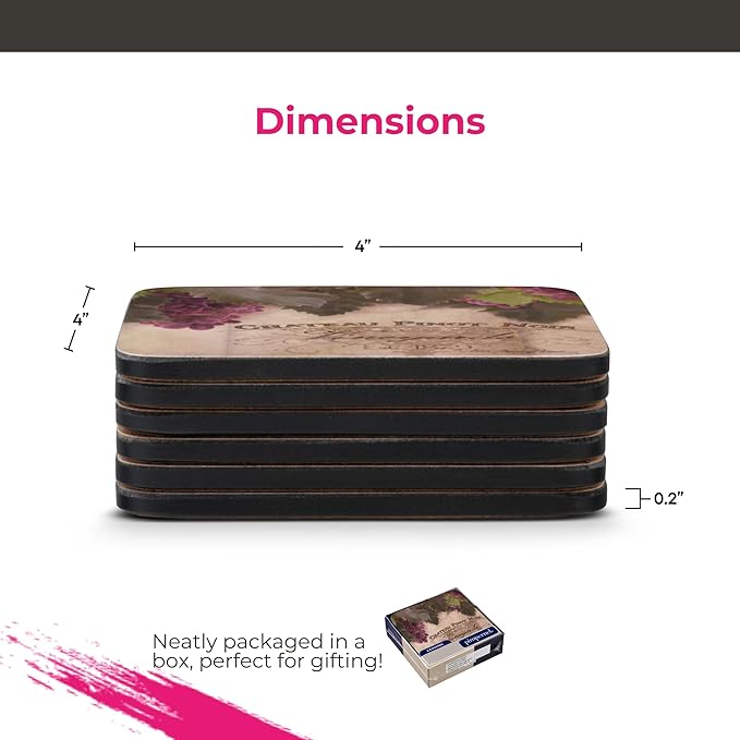 - Tuscan Vineyard Design: Each coaster showcases beautiful grape varietals from Tuscany, making them a charming addition to any wine-themed decor or a thoughtful gift for travelers.