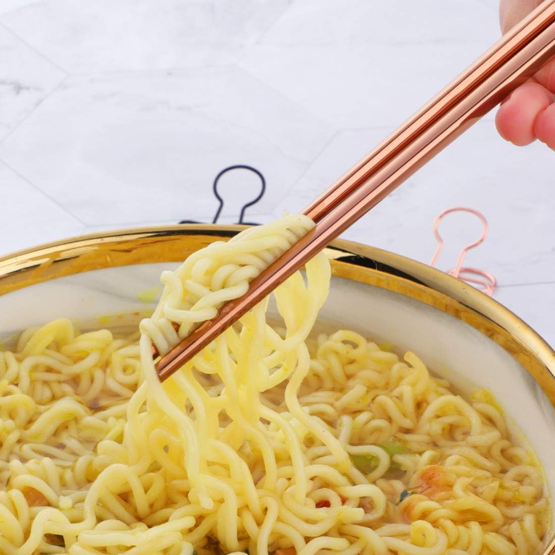 Buyer Star 5-Pair Stainless Steel Chopsticks - Reusable Rose Gold Chinese Square Chopsticks