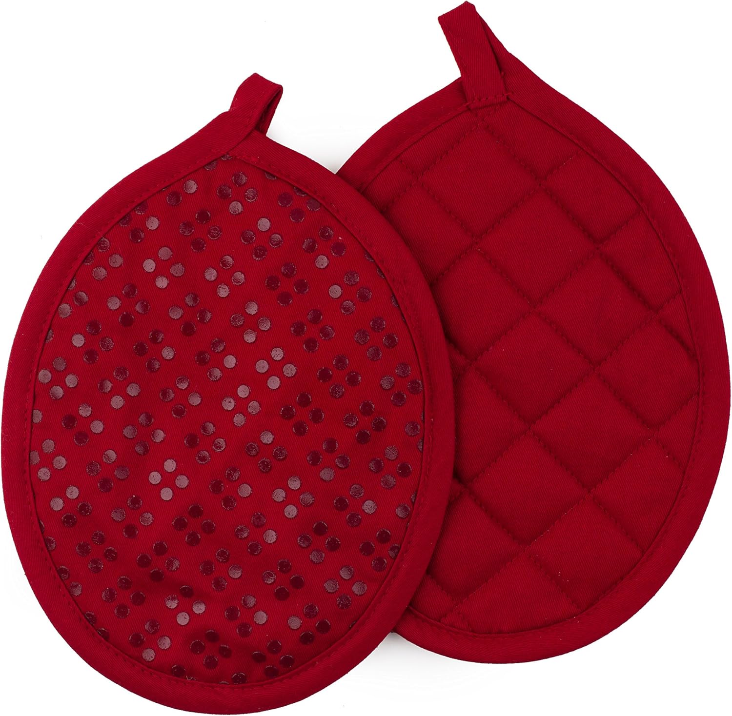 Sticky Toffee Oven Mitt and Pot Holder Set of 3 – Red Non-Slip Silicone Kitchen Hot Pads and Mitts, 100% Cotton Shell, Oeko-Tex Cotton
