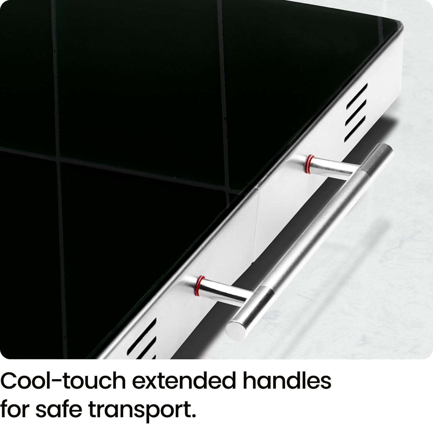- HIGH QUALITY: Can be used with all heat safe cookware and bake-ware; aluminum or glass baking pans, casserole dishes, pots, pans and more. Cool touch aluminum handles for convenient transport and added safety.