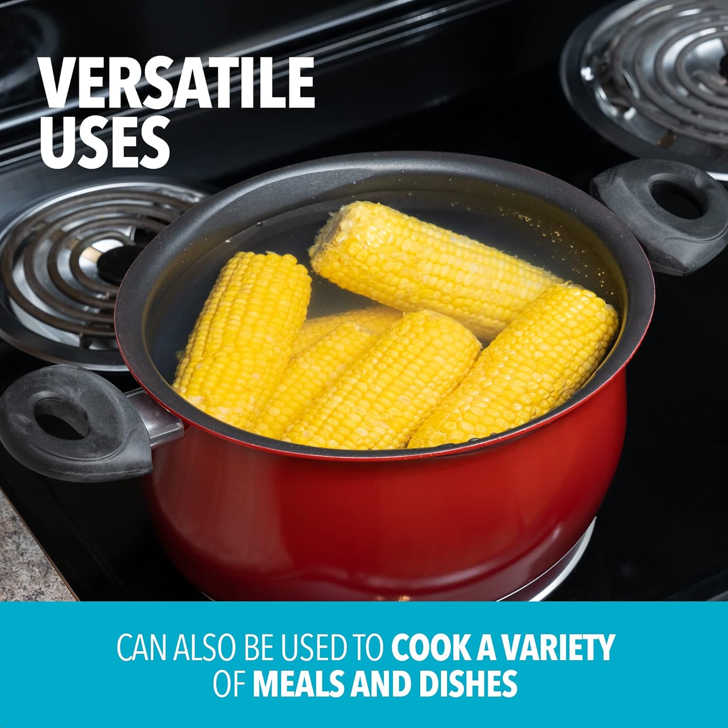 - ERGONOMICALLY DESIGNED: The heat-resistant handles stay cool while cooking, ensuring a secure and comfortable grip. This feature enhances safety and ease of use while in the kitchen with a steaming pot.
