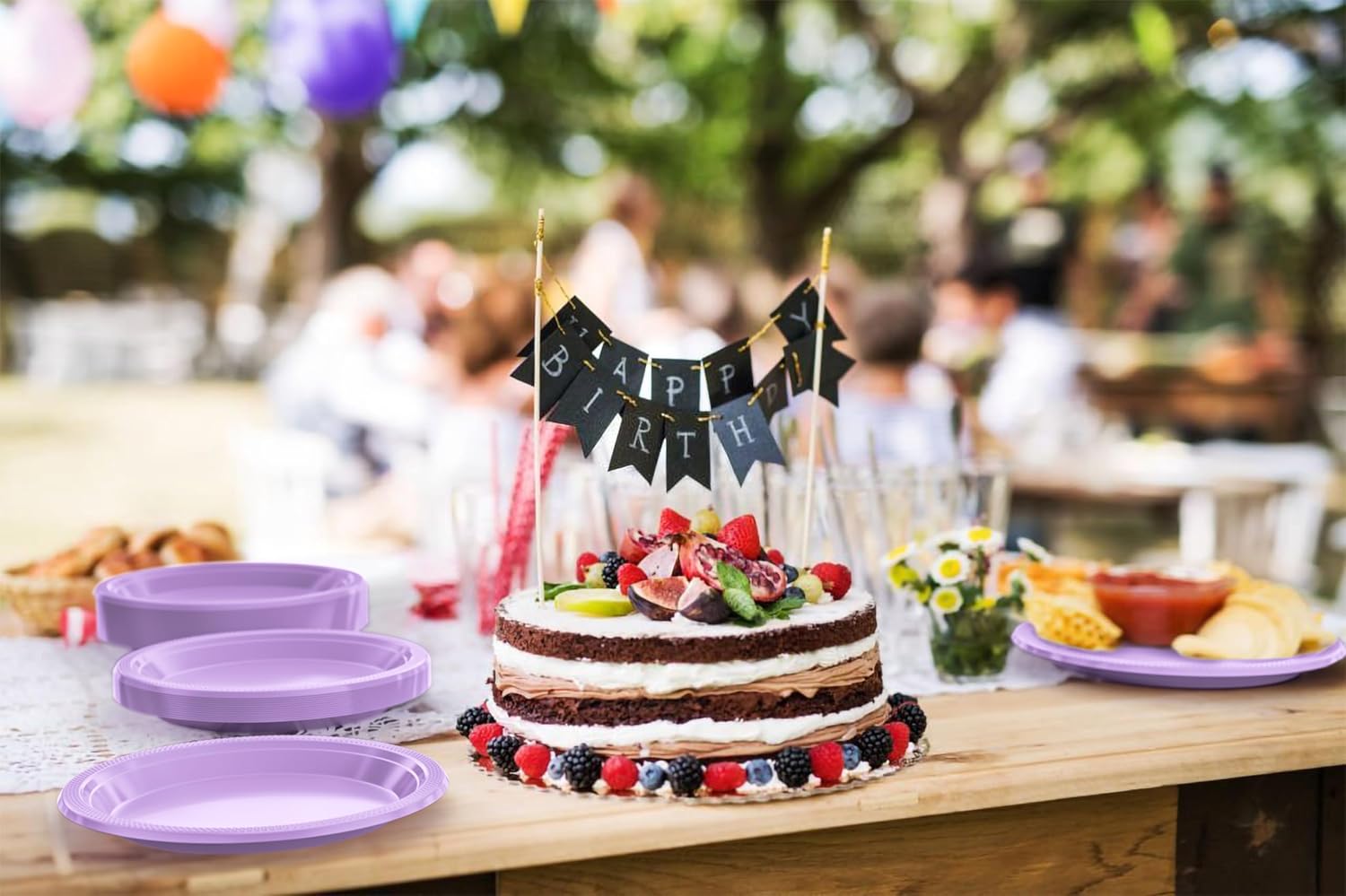 - Includes: Each pack comes with 100 Lavender 9 inch dinner plates. These plates may be used as dinner plates or cake plate and also make a great use as picnic supplies. Having these will complete your plastic dinnerware collection.