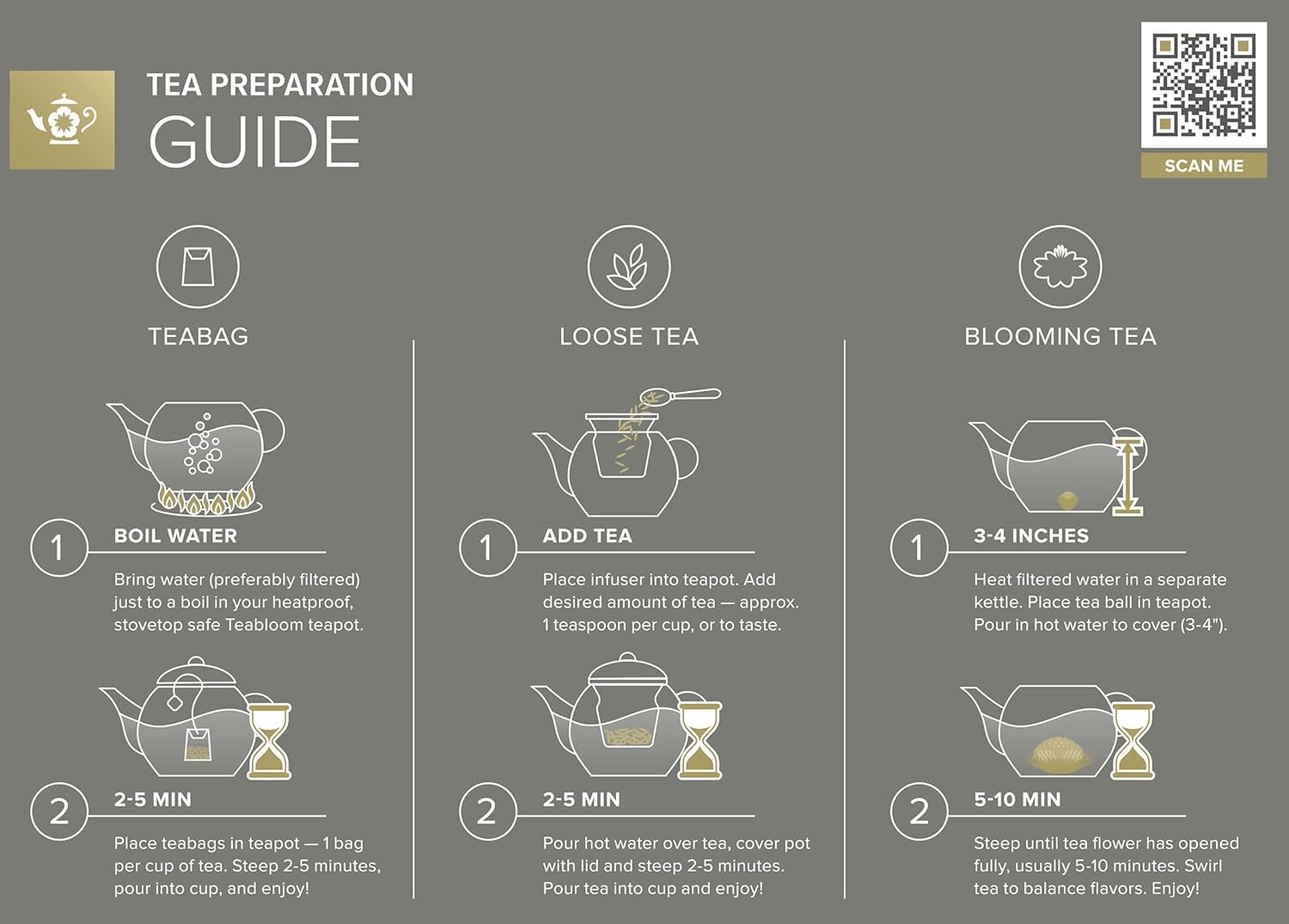 - GIFT SET INCLUDES TWO BLOOMING TEAS. The Celebration Tea Kettle comes with two Teabloom jasmine-infused blooming tea flowers – also perfect for loose-leaf tea, teabags and fruit-infused waters. As a gift for a special person – or yourself! – this is a tasteful choice that shows how much you care.