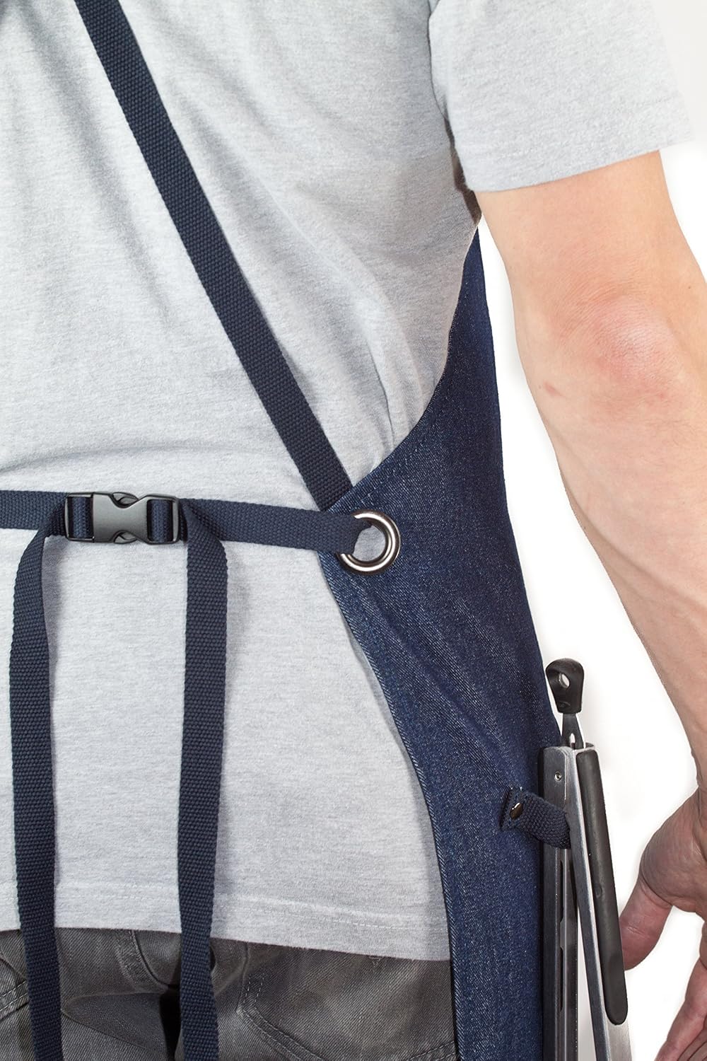 • Denim Durability – Your chef apron will be there for you for years to come. Tough denim, metal-riveted pockets, and reinforced stitching come together to make this apron a wearable fortress.