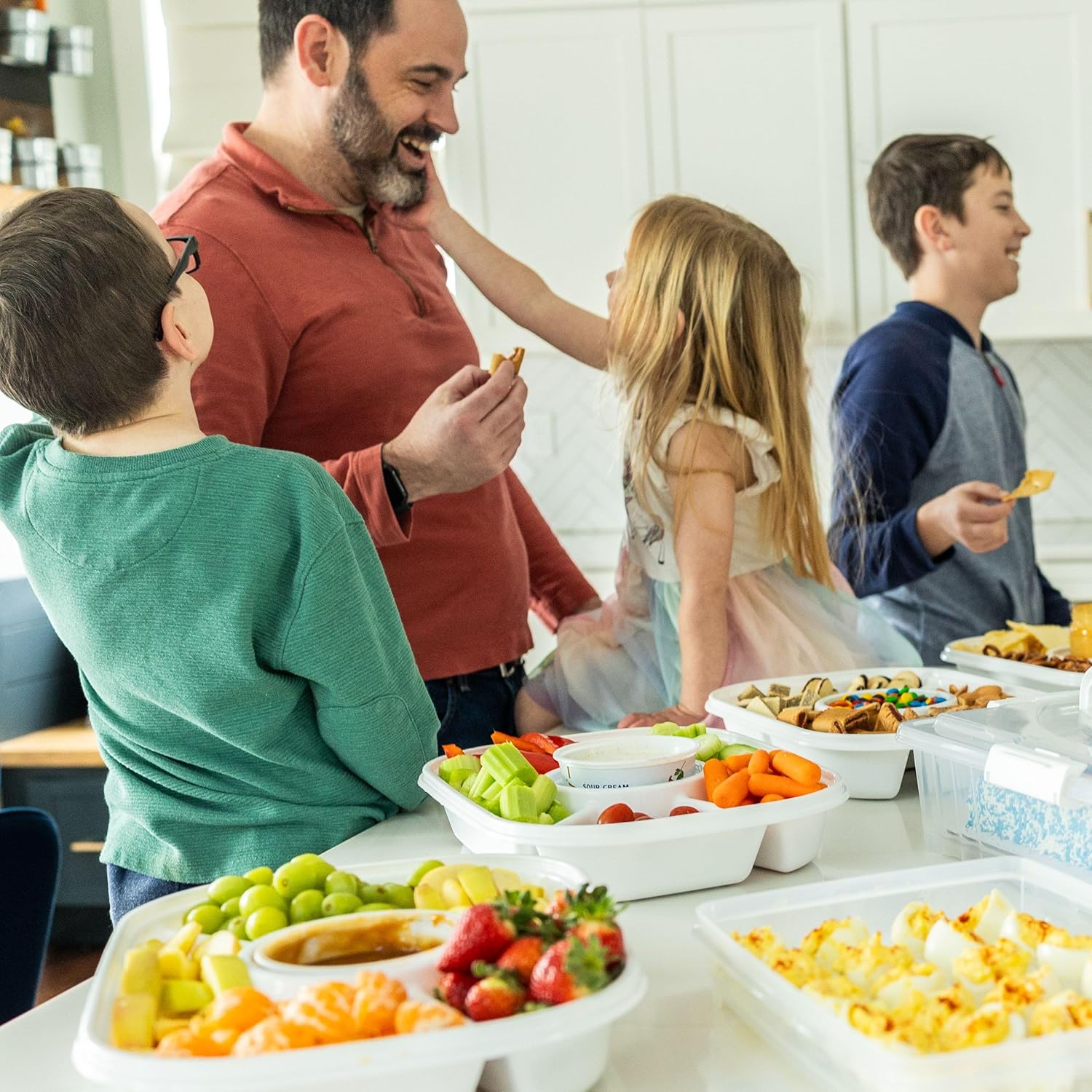- ALL IN ONE VERSATILITY - Use as a chip and dip tray, fruit and veggie organizer, candy container, or even a charcuterie board. This is your ultimate multi use snackable box solution.