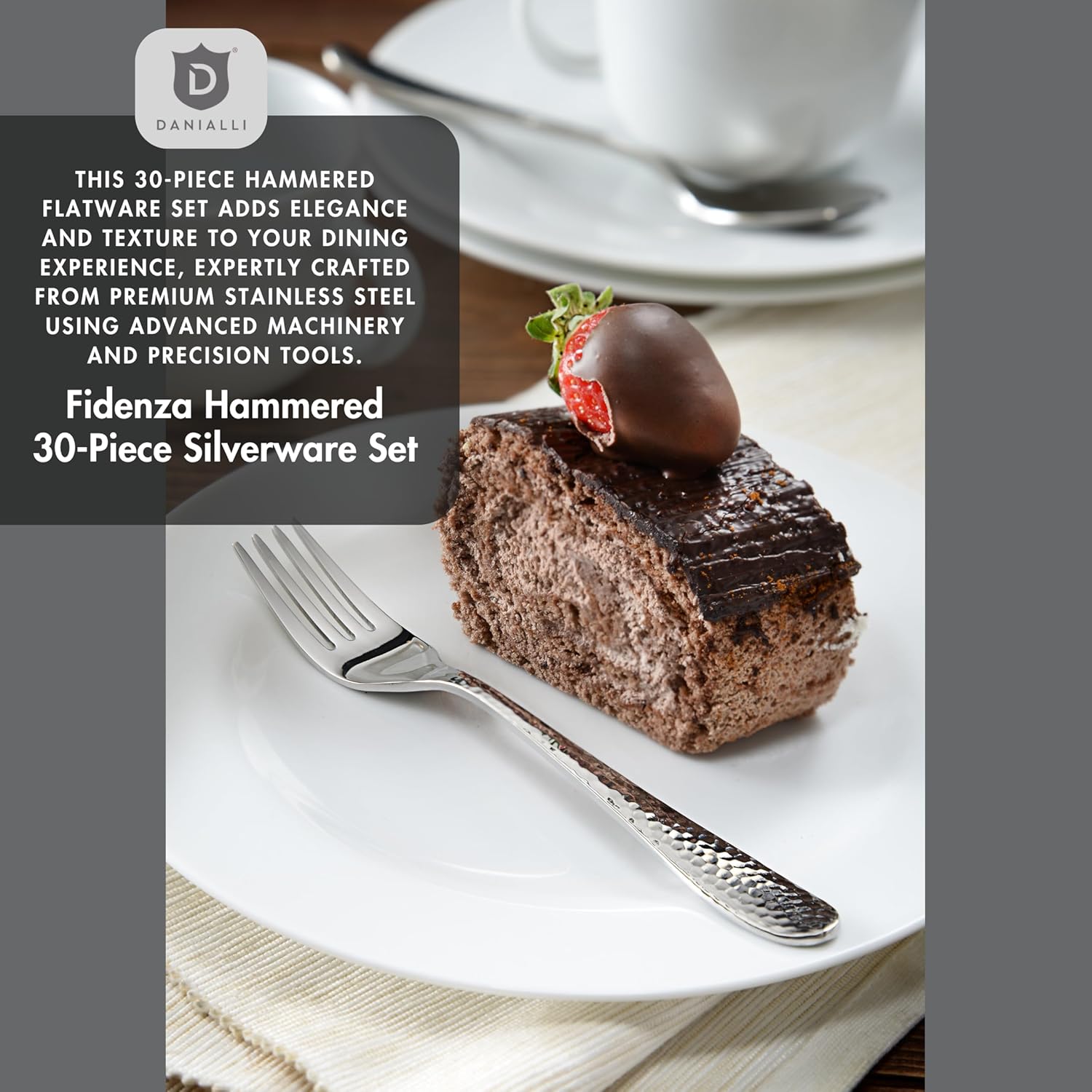 Hammered Silverware Set | Premium 18/10 Stainless Steel Flatware Service for 6 | Heavy-Duty & Dishwasher Safe | Built to Last (30-Piece, Fidenza Hammered)