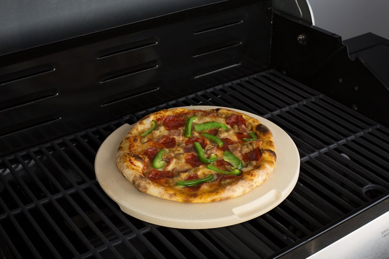 Pizza Stone 12.6in Round Baking & Grilling Stone, Perfect for Oven, BBQ and Grill. Innovative Double - faced Built - in 4 Handles Design