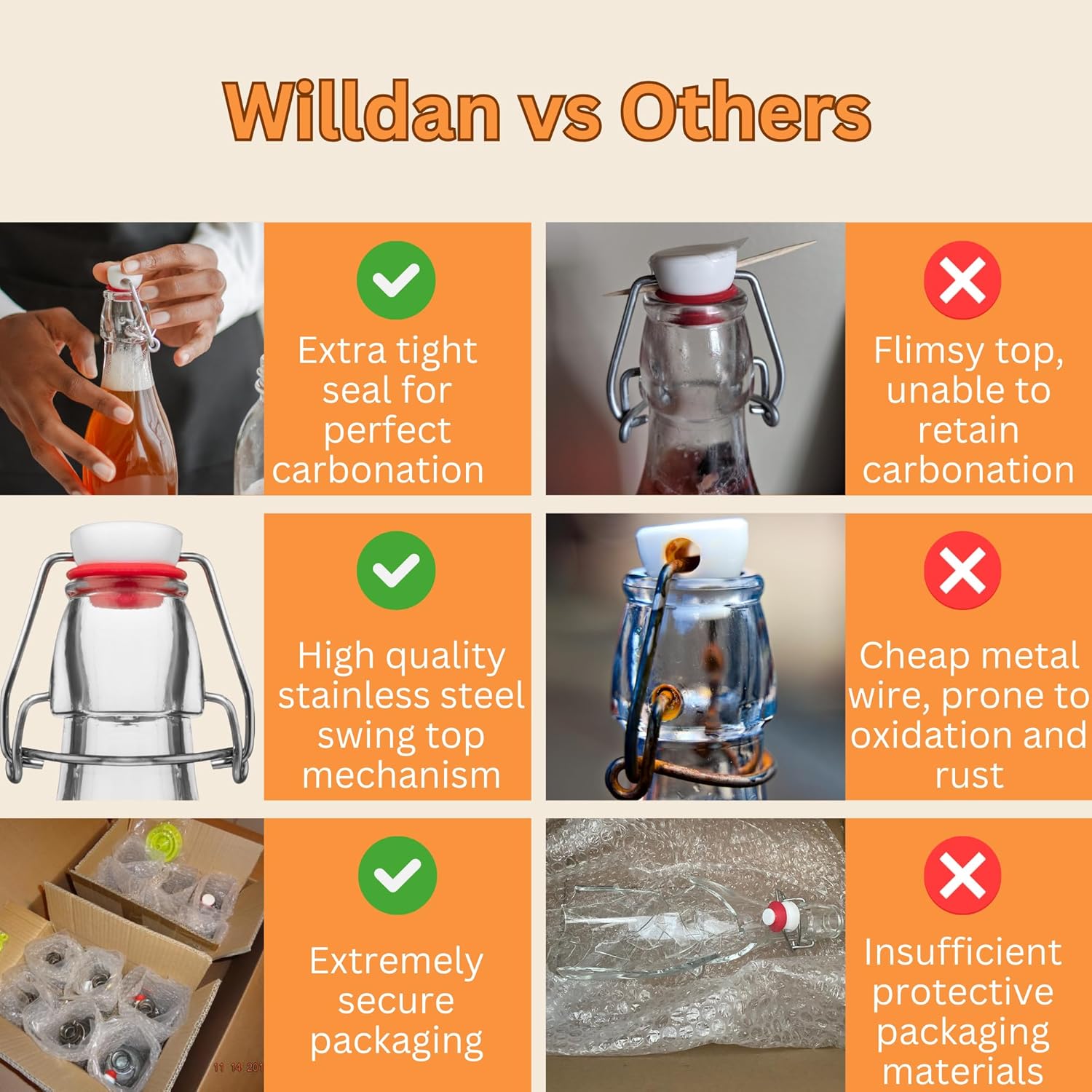 ![WILLDAN Swing Top Glass Bottles [1 Liter / 33 fl. oz.] [Pack of 6] Flip Top Brewing Bottle w/Leak Proof Stopper Lids for Fermentation, Kombucha, Mead, Vinegar, Beer, Kefir, Wine, Water, Soda](http://aurakitchenk.com/cdn/shop/files/71Ju7HeyXZL._AC_SL1414.jpg?v=1762309833&width=1445)