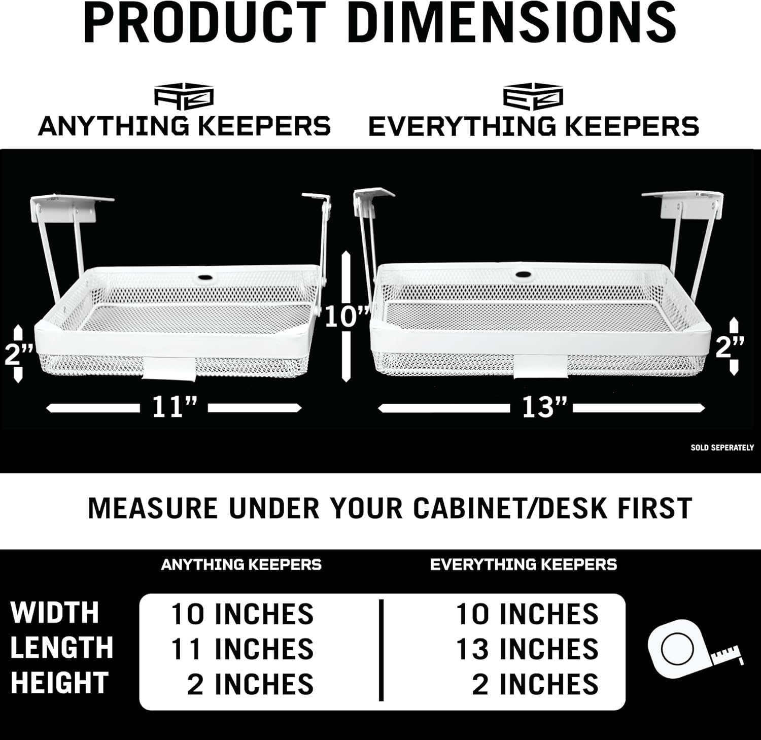 - Clutter Be Gone: Install the handy Everything Keeper under your desktop at work or in your home office to permanently eliminate disruptive clutter. This storage solution makes an effective organizer for all the small-but-necessary accessories that used to take up space on your work surface. You’ll appreciate the fresh space, clarity, & organized feel, perhaps even getting more work done in a timely manner.
