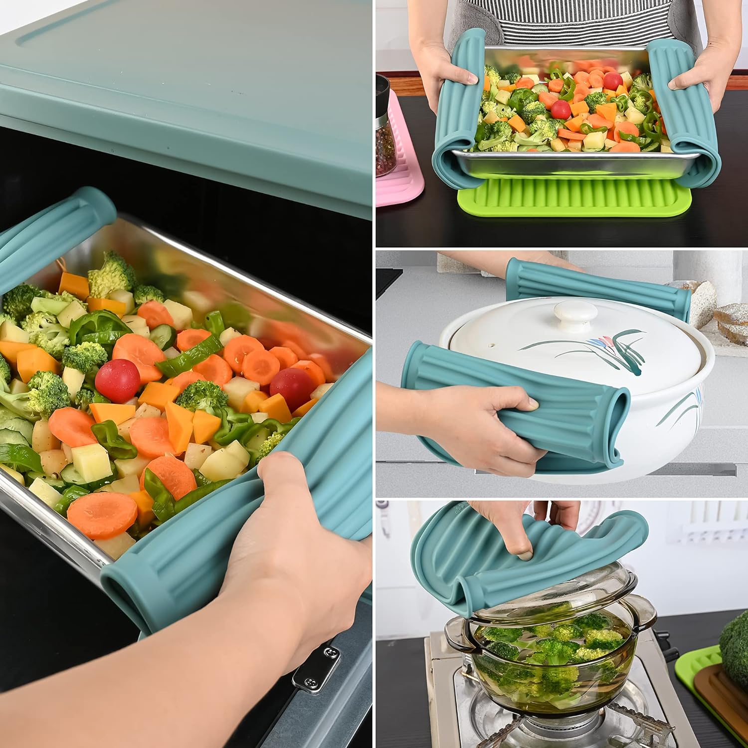 - FOOD-GRADE SILICONE&PERFECT SIZE - Silicone Trivets wereMade from 100% BPA free <br>food grade silicone, non-slip,flexible <br>enough to comfortably grab a hot dish or pan,<br> size 9x12 Inch,Weight:340g per set(thicker and weighter than others).
