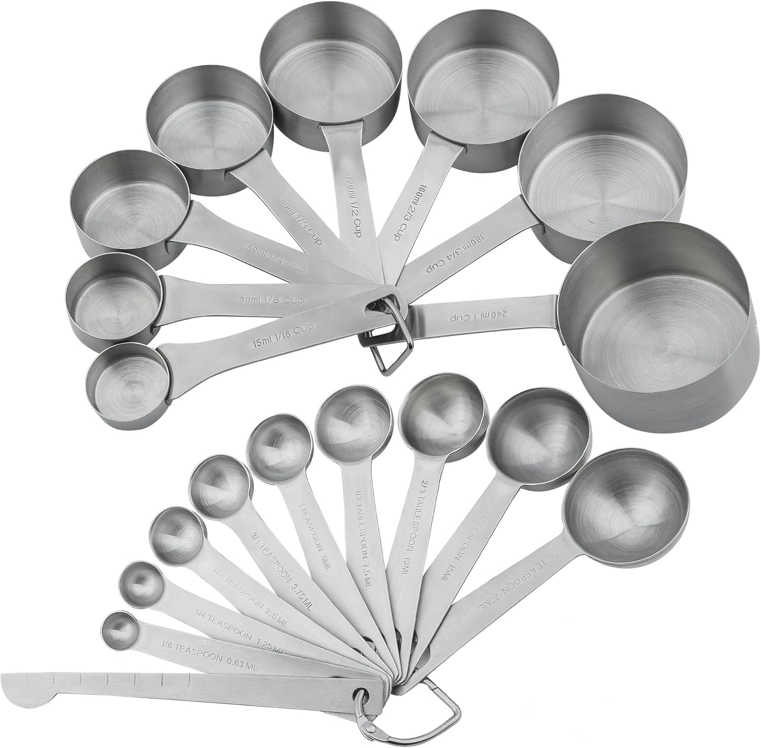 Smithcraft Measuring Cups and Spoons Set, 18/8 Stainless Steel Measuring Cups and Spoons for Kitchen & Baking, Heavy Duty Metric & US 8 Measuring cups, 9 Measuring Spoons Set