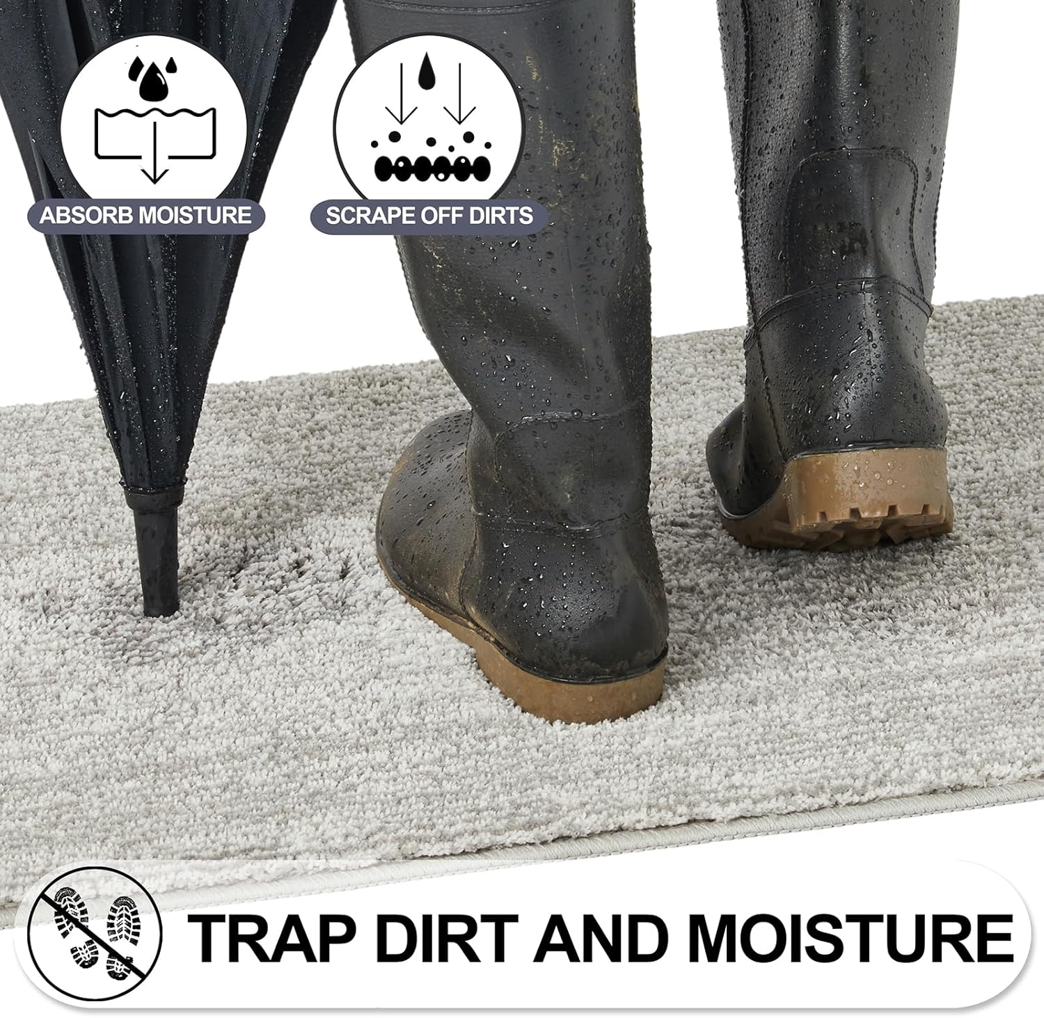 REFETONE Indoor Doormat, Front Door Mat 20"x32" Absorbent Rubber Backing Non Slip Back Door Mats, Washable Low-Profile Inside Floor Mat Door Rugs for Entryway, Resist Dirt Mud Mat for Dogs, Grey