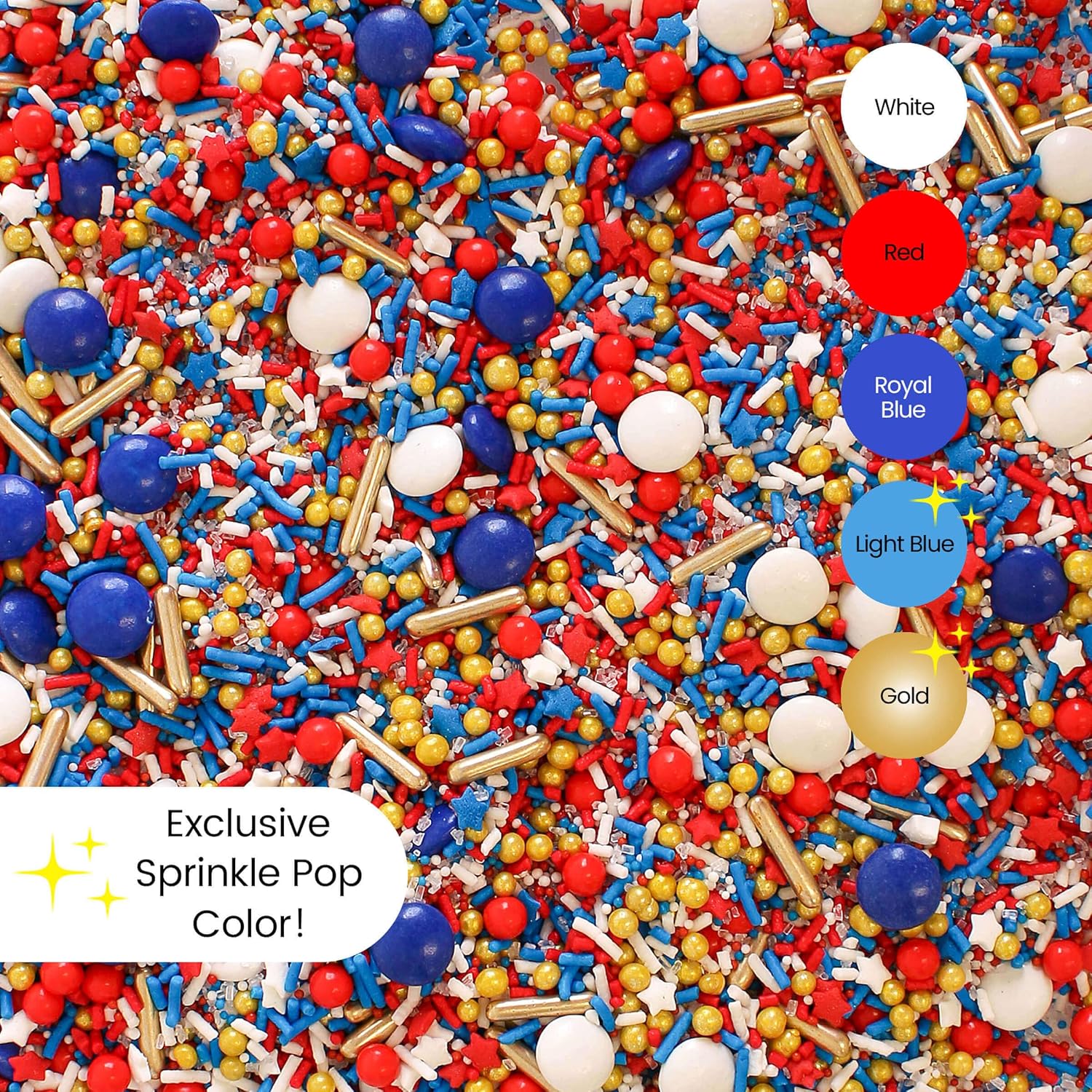 Sprinkle Pop Old Glory Sprinkle Mix| Red White Blue Sprinkles with Gold Metallics| Decorating Patriotic Sprinkles Made in USA for 4th of July Independence Day Cakes Cupcakes Donuts Cookies, 4oz