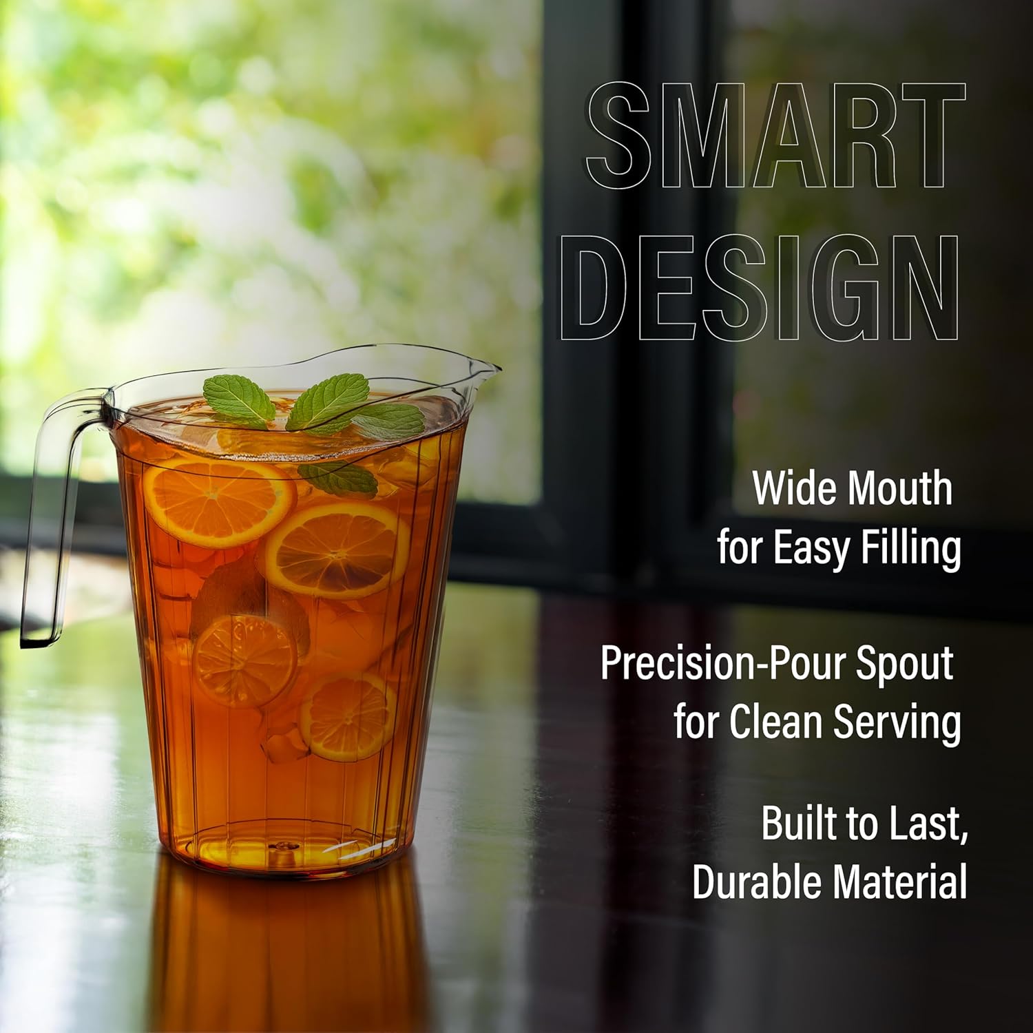 DecorRack 2 Pack - 75 oz Polycarbonate Plastic Pitcher Beverage Dispenser with Pour Spout Shatterproof Catering and Restaurant Serveware for Cold Drinks, Water, Lemonade, Beer, and Sangria (2 Pack)