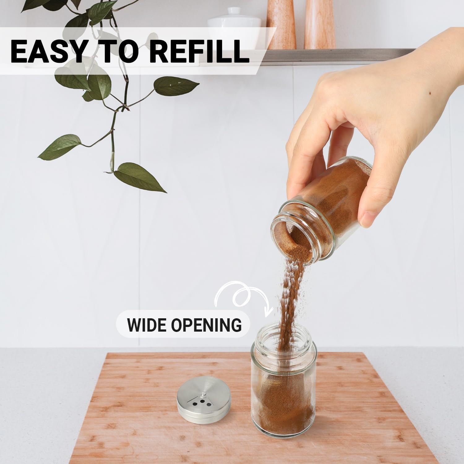 - Stylish Design: Add stylish design that adds charm to your kitchen. These spice jars are easy to use, easy to clean, and easily blend into the contemporary home.
