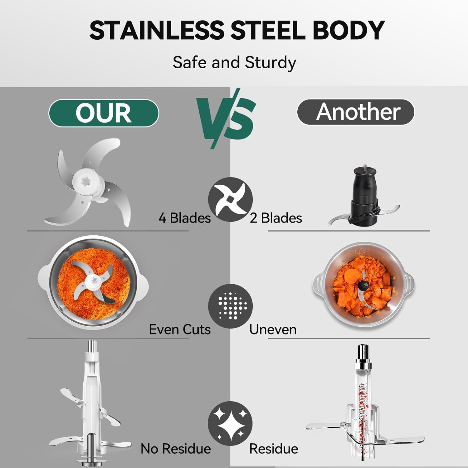 - Easy to Clean & Store: stainless steel food chopper resist to scratch and corrosion, compact and lightweight, perfect size of this meat grinder electric for everyday use in the kitchen, dishwasher-safe