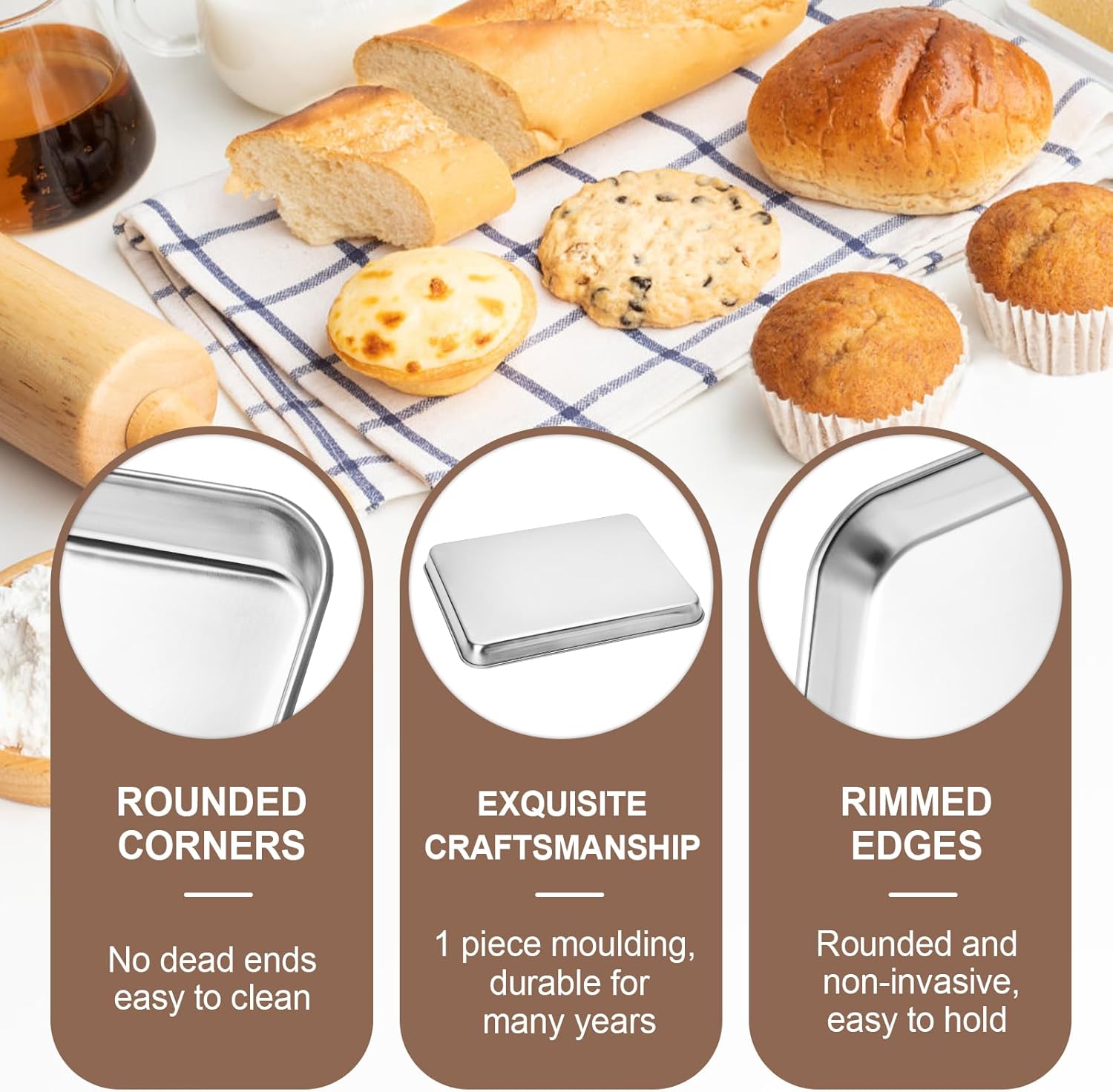 - HEALTHY: Our baking pans are made of pure 18/0 stainless steel material without toxic chemical coating or any other materials, a great replacement for the aluminum pan. You needn't worry about rusty or chrome flaking off into your food