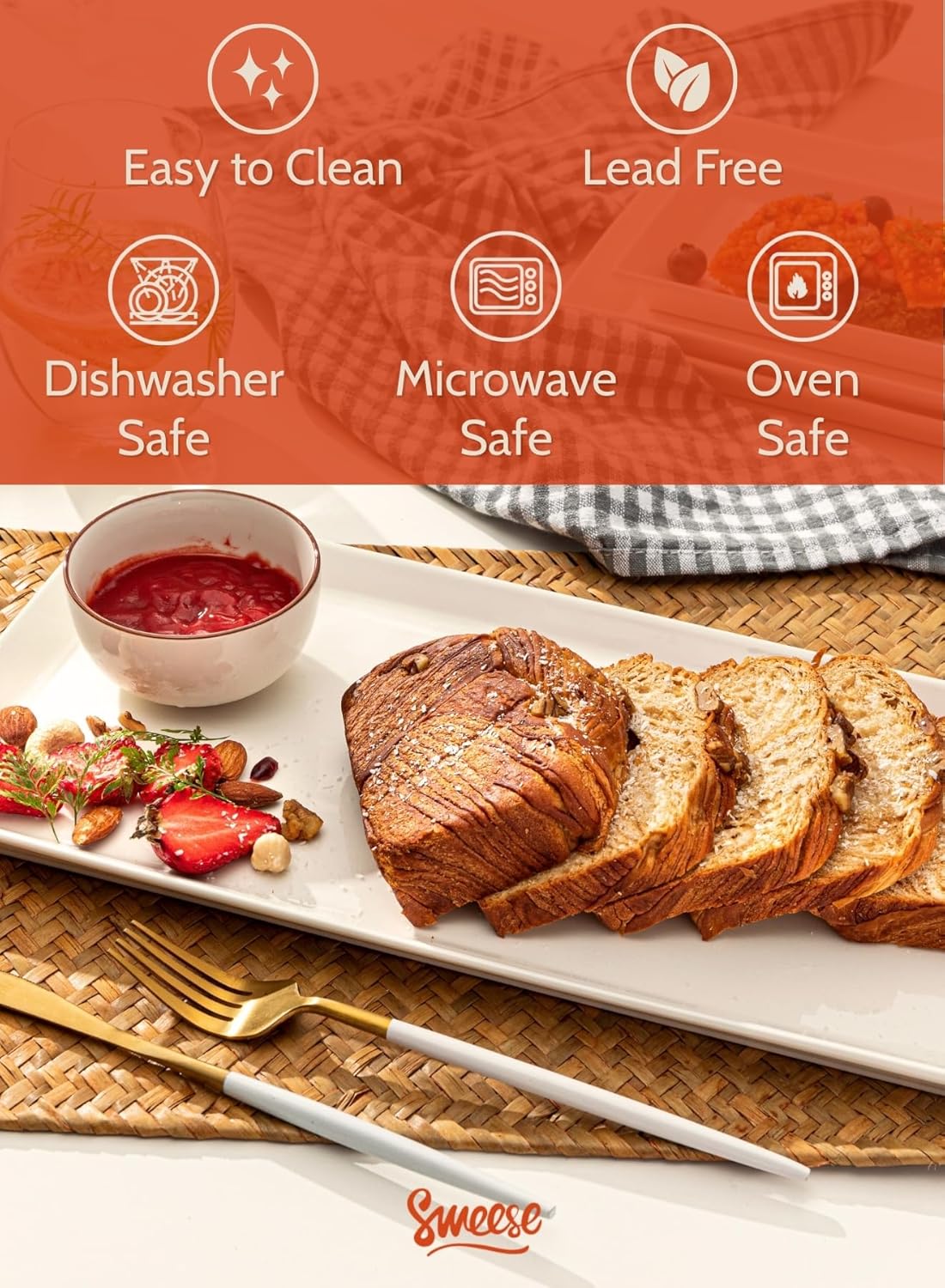 - PRO-GRADE PORCELAIN & SAFE FOR DISHWASHER, MICROWAVE, AND FREEZER - The large rectangular platters are made of durable porcelain, a type of premium LEAD-FREE ceramic, chip-resistant and more sturdy than stoneware.