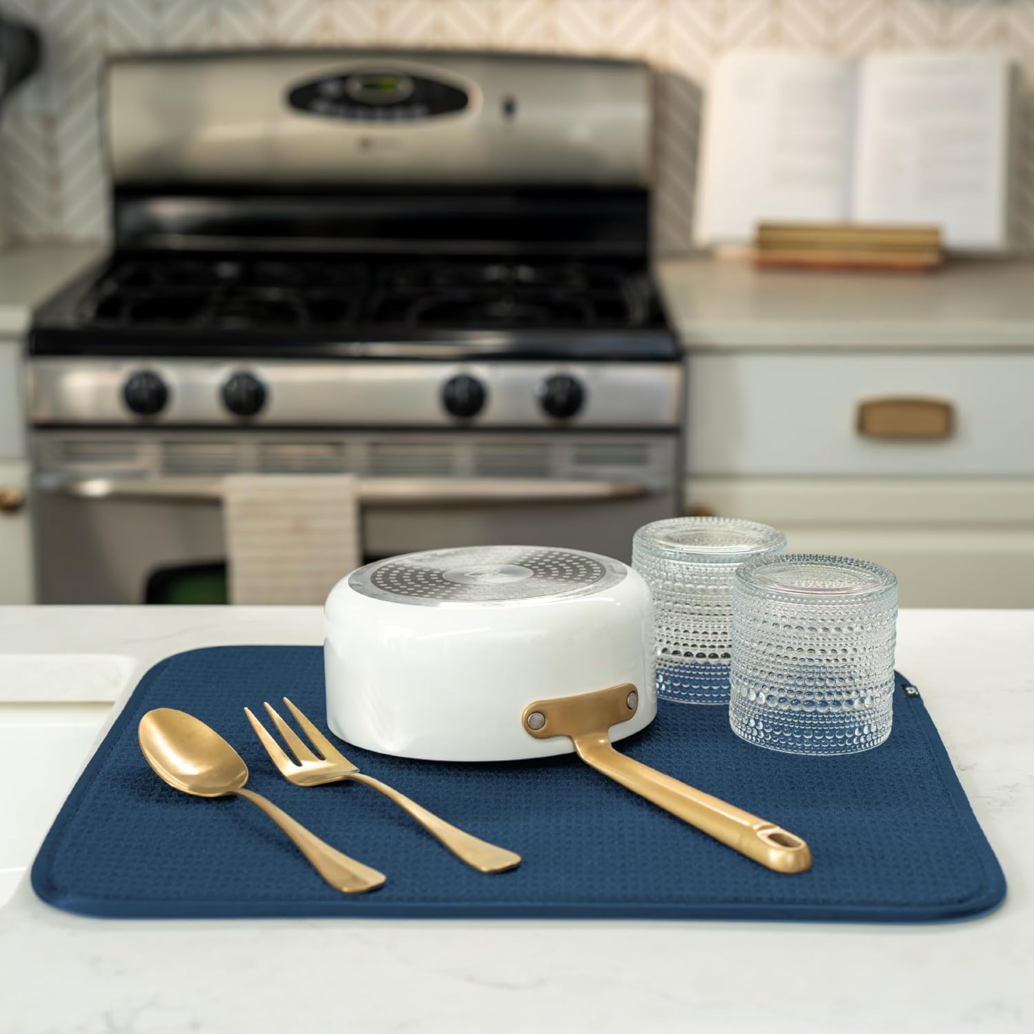 S&T INC. Dish Drying Mat, 16” x 18”, Absorbent Microfiber Kitchen Counter Mat, Dish Drying Pad for Dishes, Utensils, Pots and Pans, Large, Navy