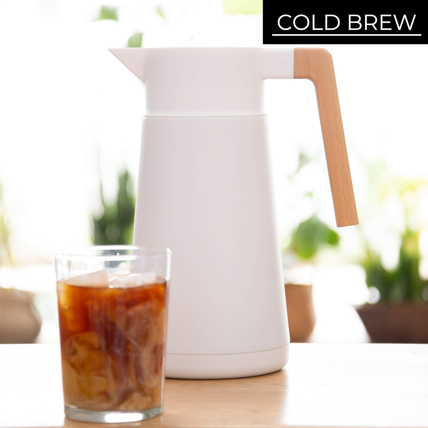 - VACUUM INSULATED carafe for coffee, juice or water. Also makes great cold brews. Designed for maximum temperature retention. Perfect coffee thermos carafe for: home, office or travel use