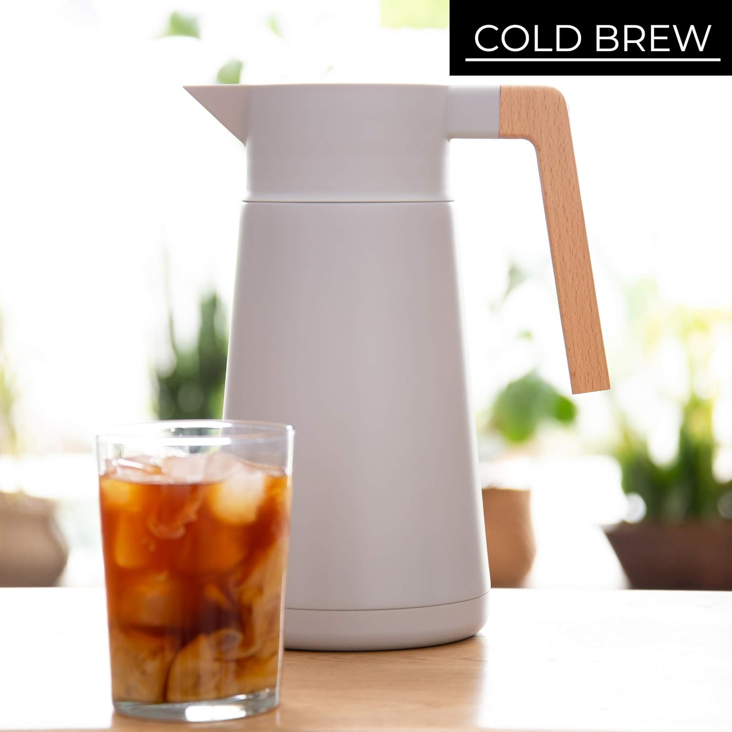 - VACUUM INSULATED carafe for coffee, juice or water. Also makes great cold brews. Designed for maximum temperature retention. Perfect coffee thermos carafe for: home, office or travel use