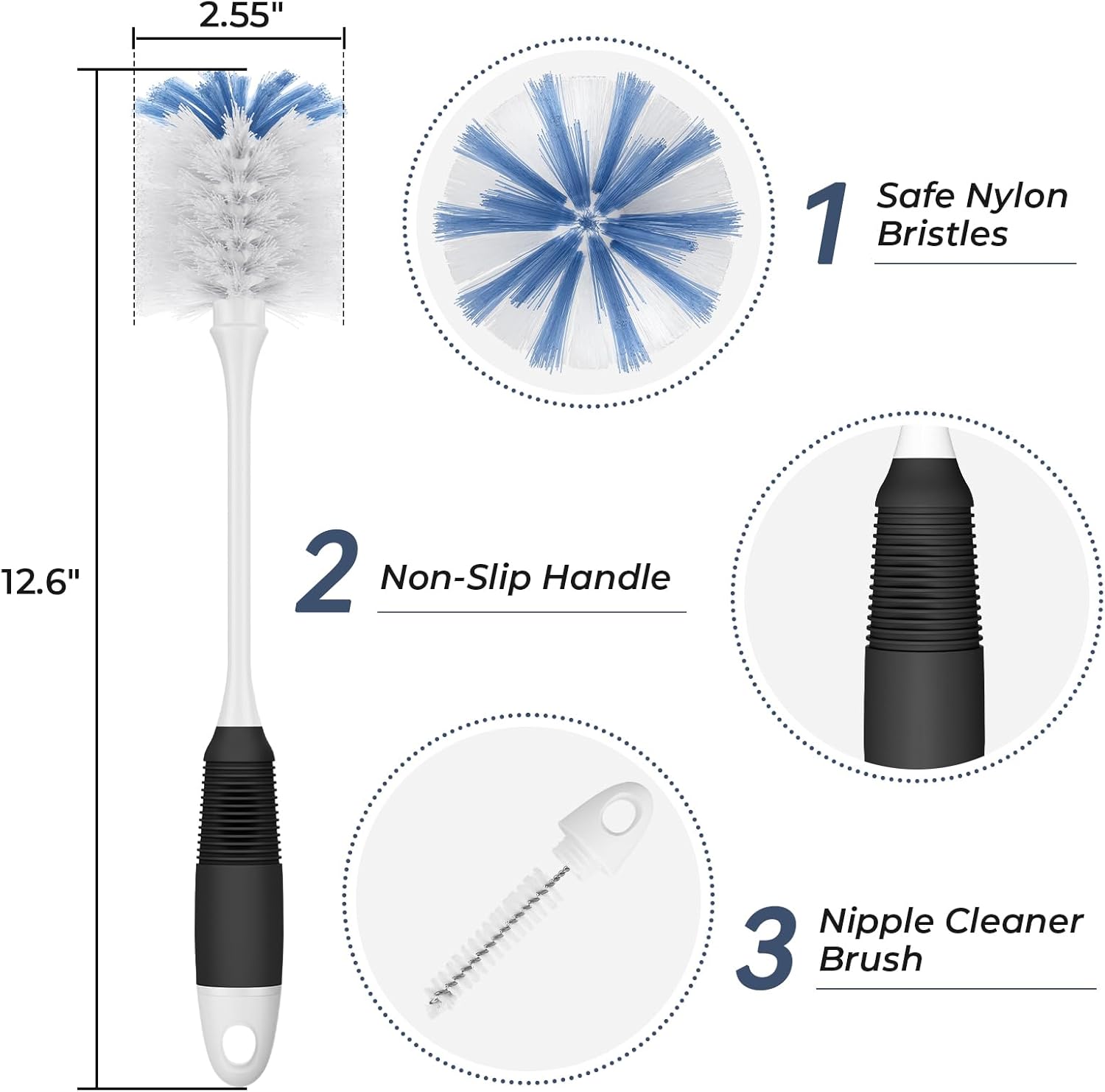 - Easy grip handle: The non-slip handle provides a secure grip, even when wet. Plus, discover a small brush hidden in the handle for cleaning lids, narrow openings, bottle nipples, or bottle inner.