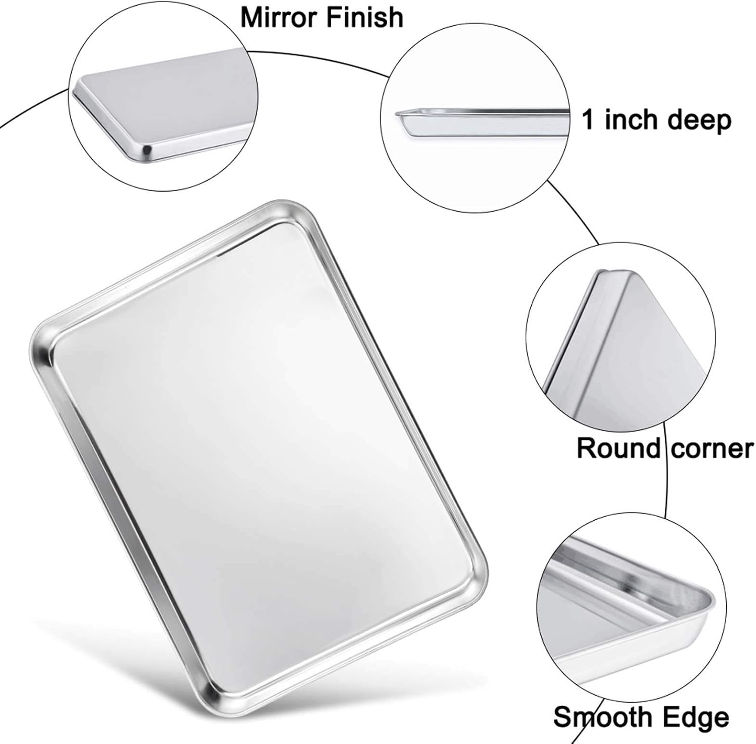 - EXQUISITE CRAFT - The stainless steel baking sheet has smooth and shiny mirror finish, The wire of the roasting rack is dense to keep food from falling through, Smooth edges prevent hurting your hands